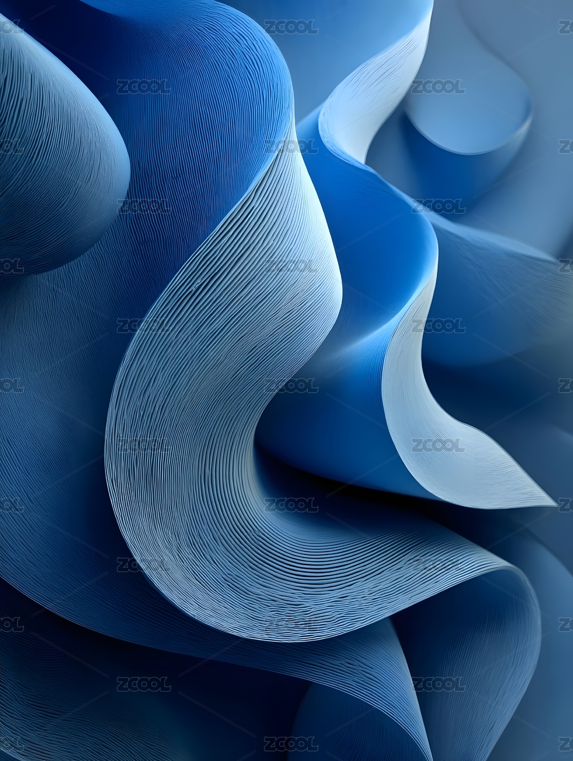 蓝色的卷曲纸张纹理构成抽象艺术