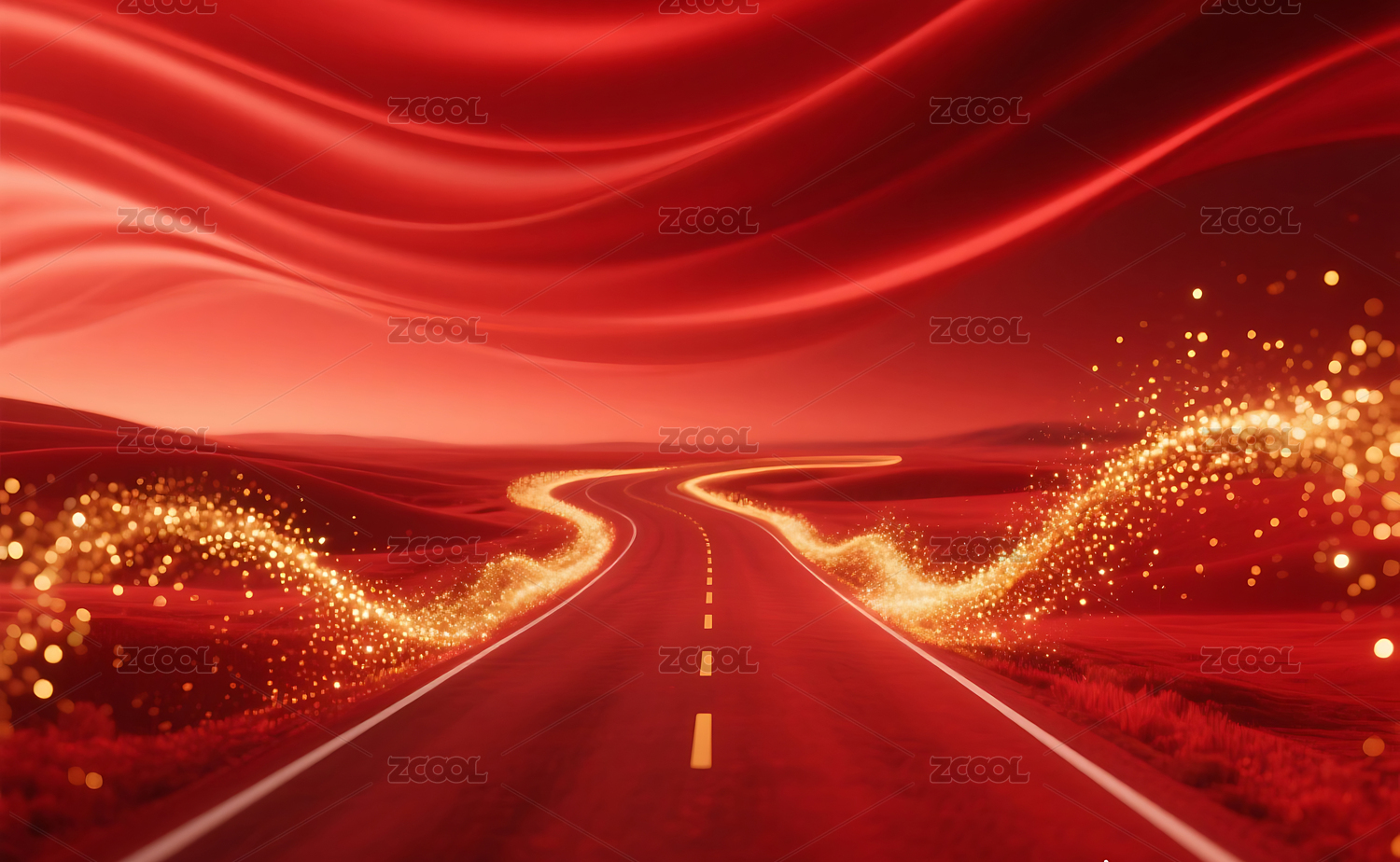 红色,道路,公路,丝绸,庆典,金粉,背景,素材