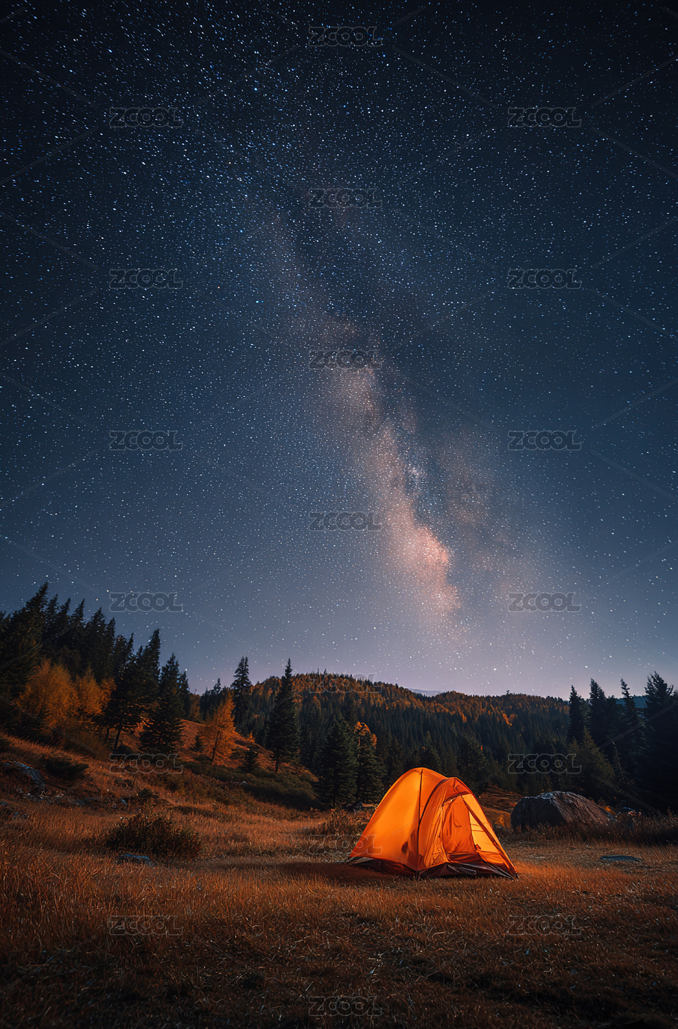 露营,帐篷,篝火,夜晚,森林,树木,星空,黑暗,野外,自然