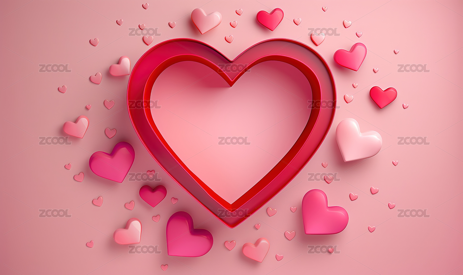 一颗红心特写镜头粉红色背景上有三颗较小红