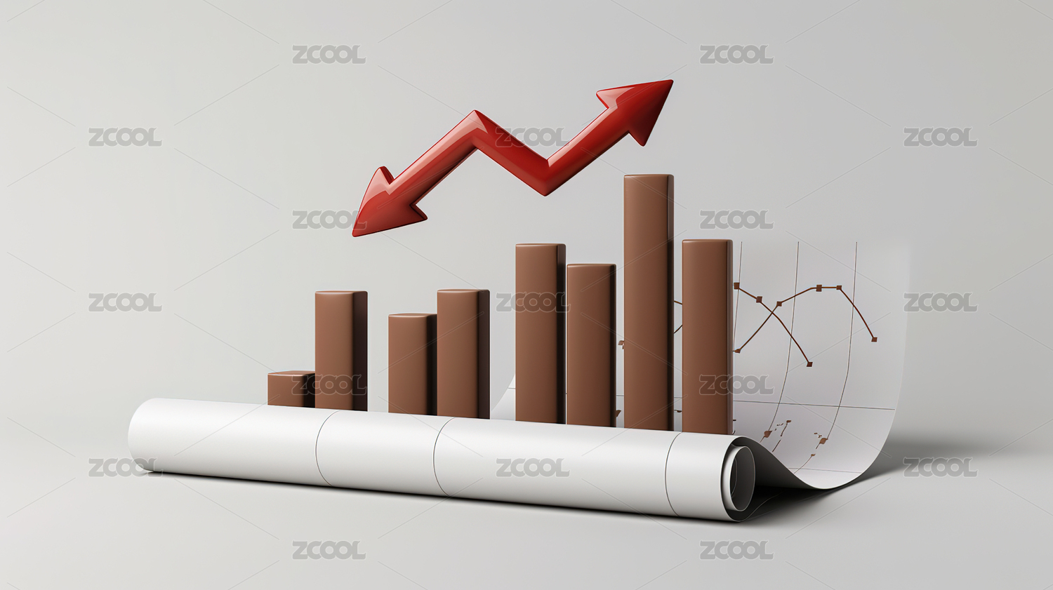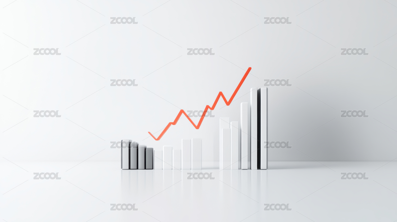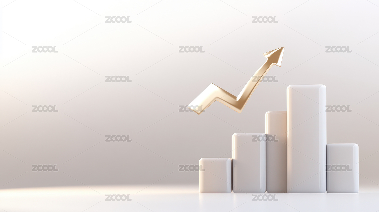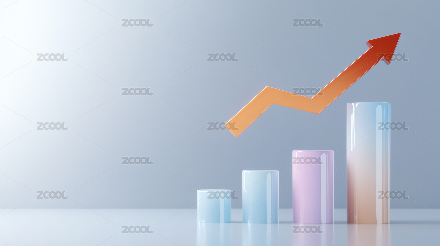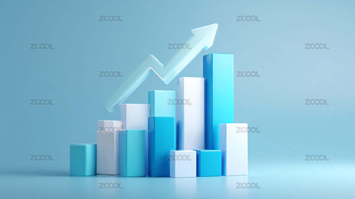 蓝色渐变玻璃质感金融柱状图增长箭头背景