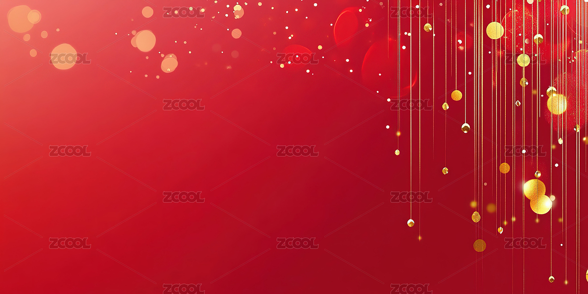 红色背景上的金色线条和光点
