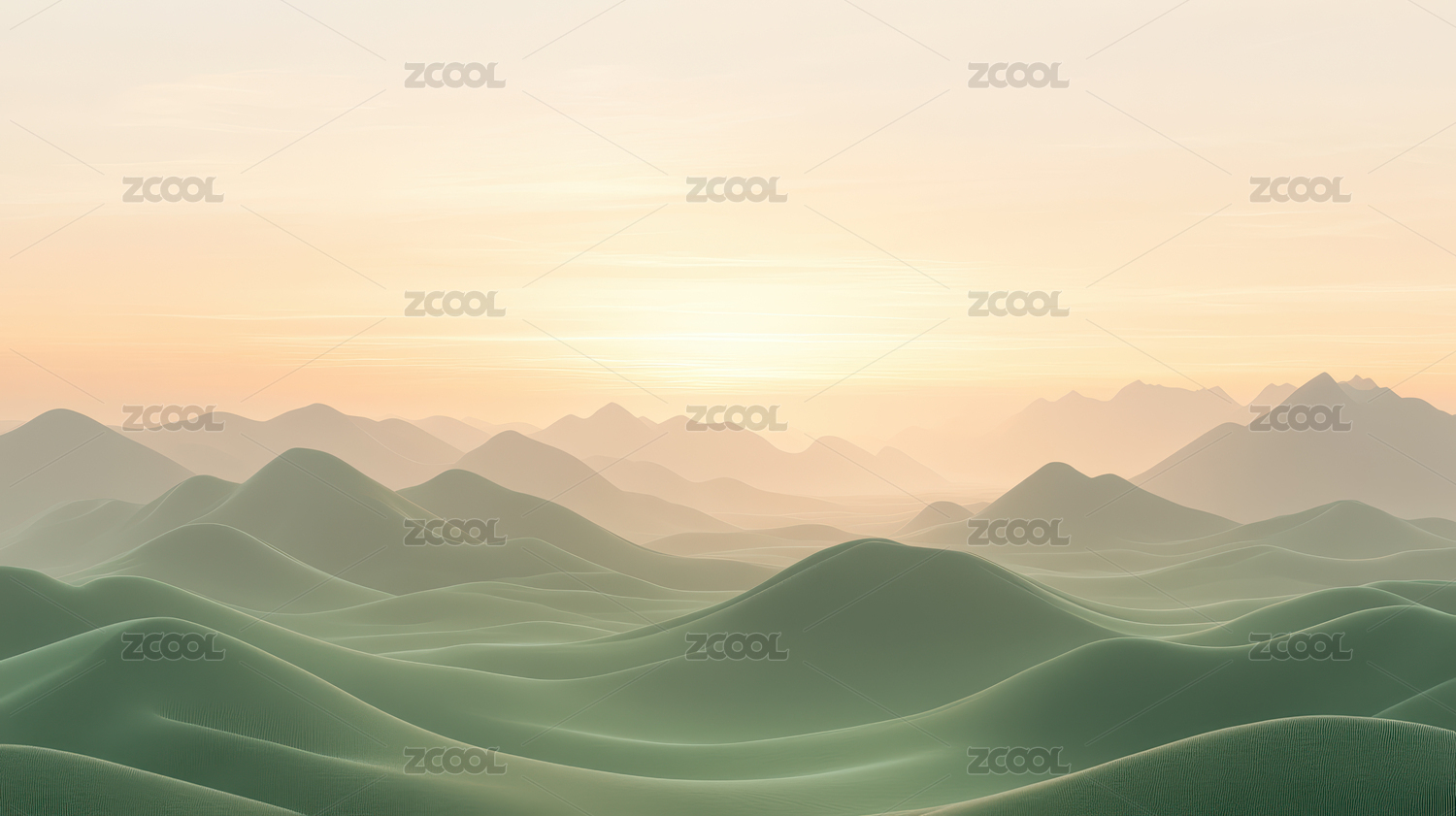 日出时的绿色山脉