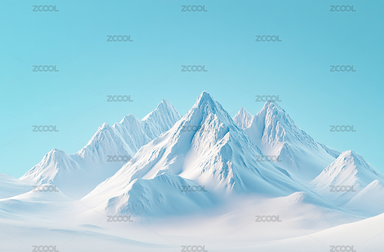 白雪皑皑的群山在晴朗的天空中俯瞰
