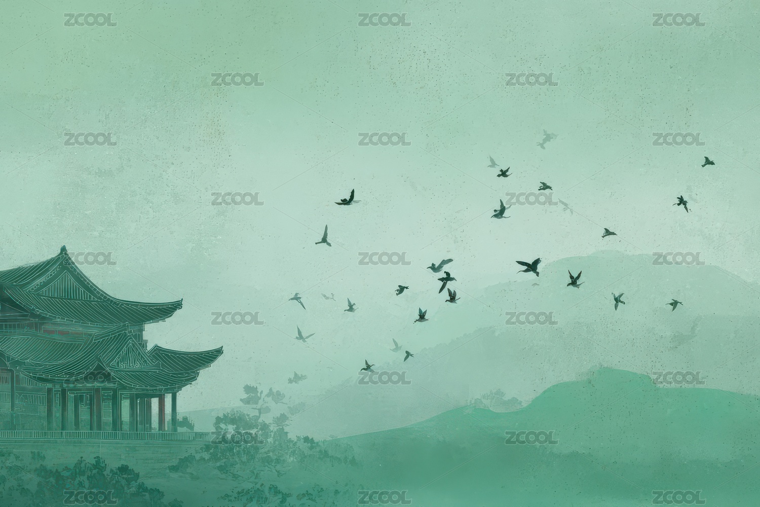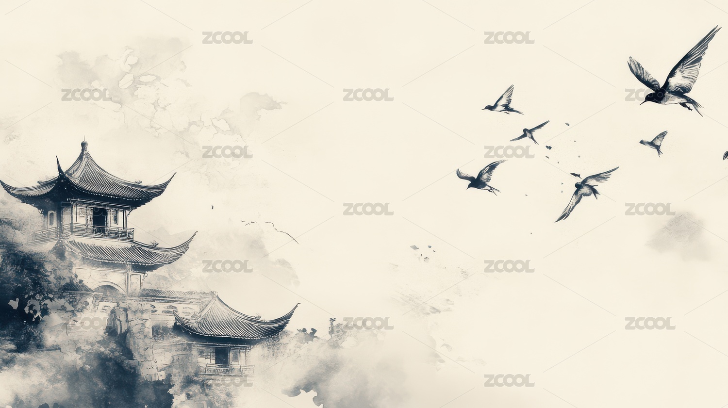 淡雅,线条,飞鸟,古建,屋顶,飞檐,意境,传统