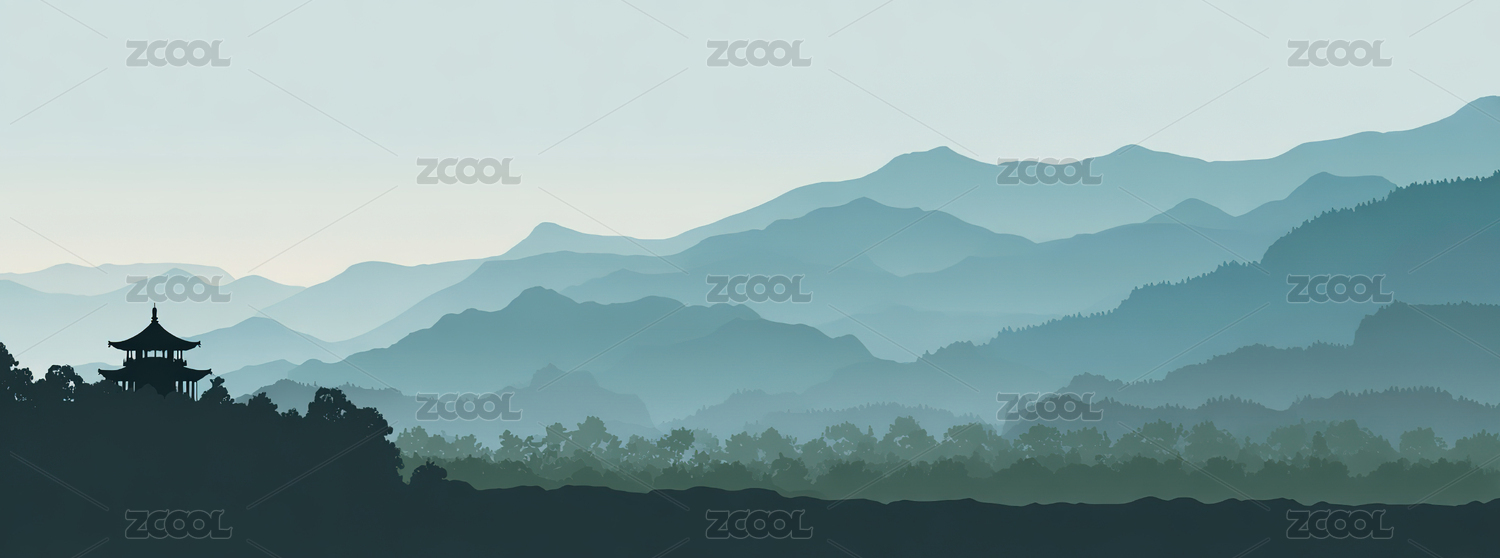 淡雅,山峦,远山,层叠,意境,古塔,幽静,轮廓