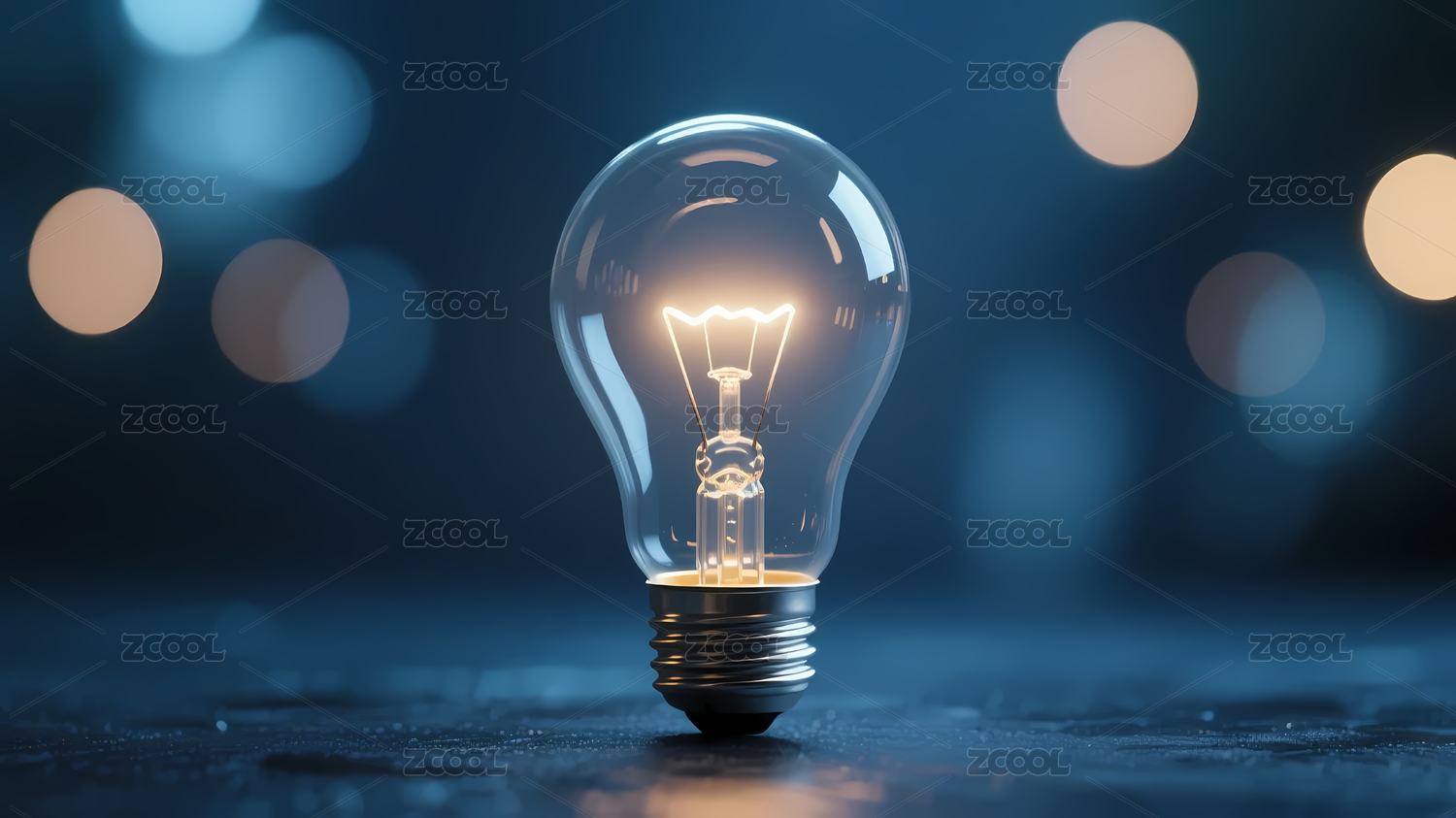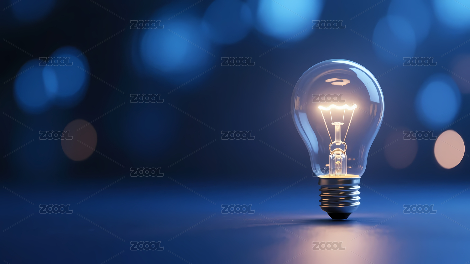 黄色,深蓝,光斑,发光,渐变,静物,透明,灯泡,钨丝,光源