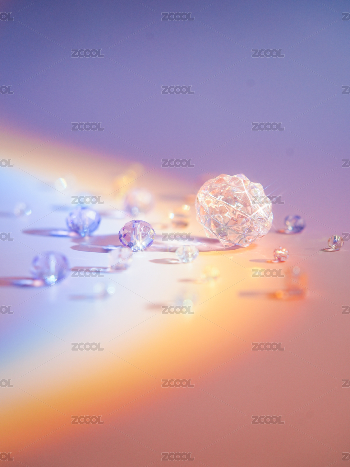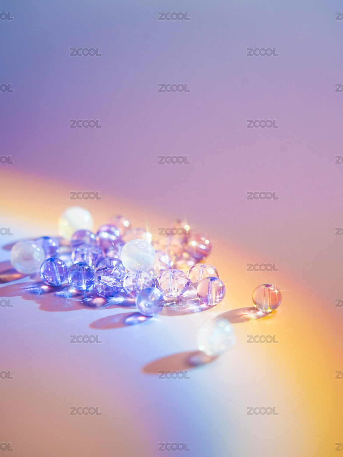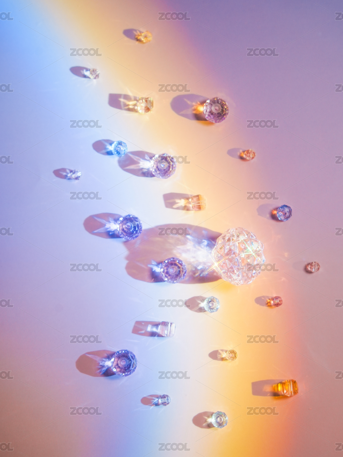彩虹灯光下的水晶亚克力珠子