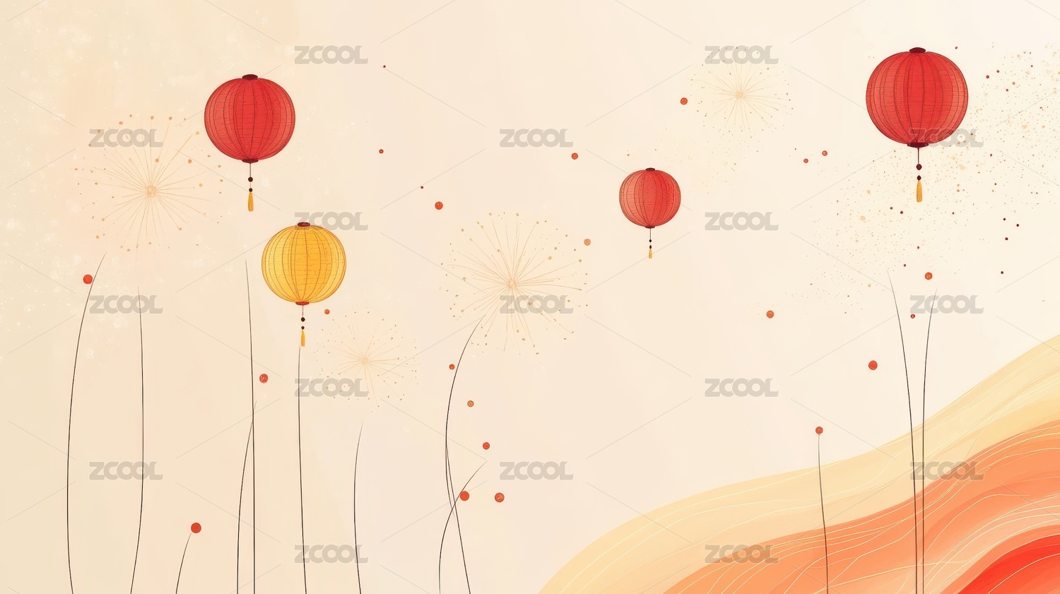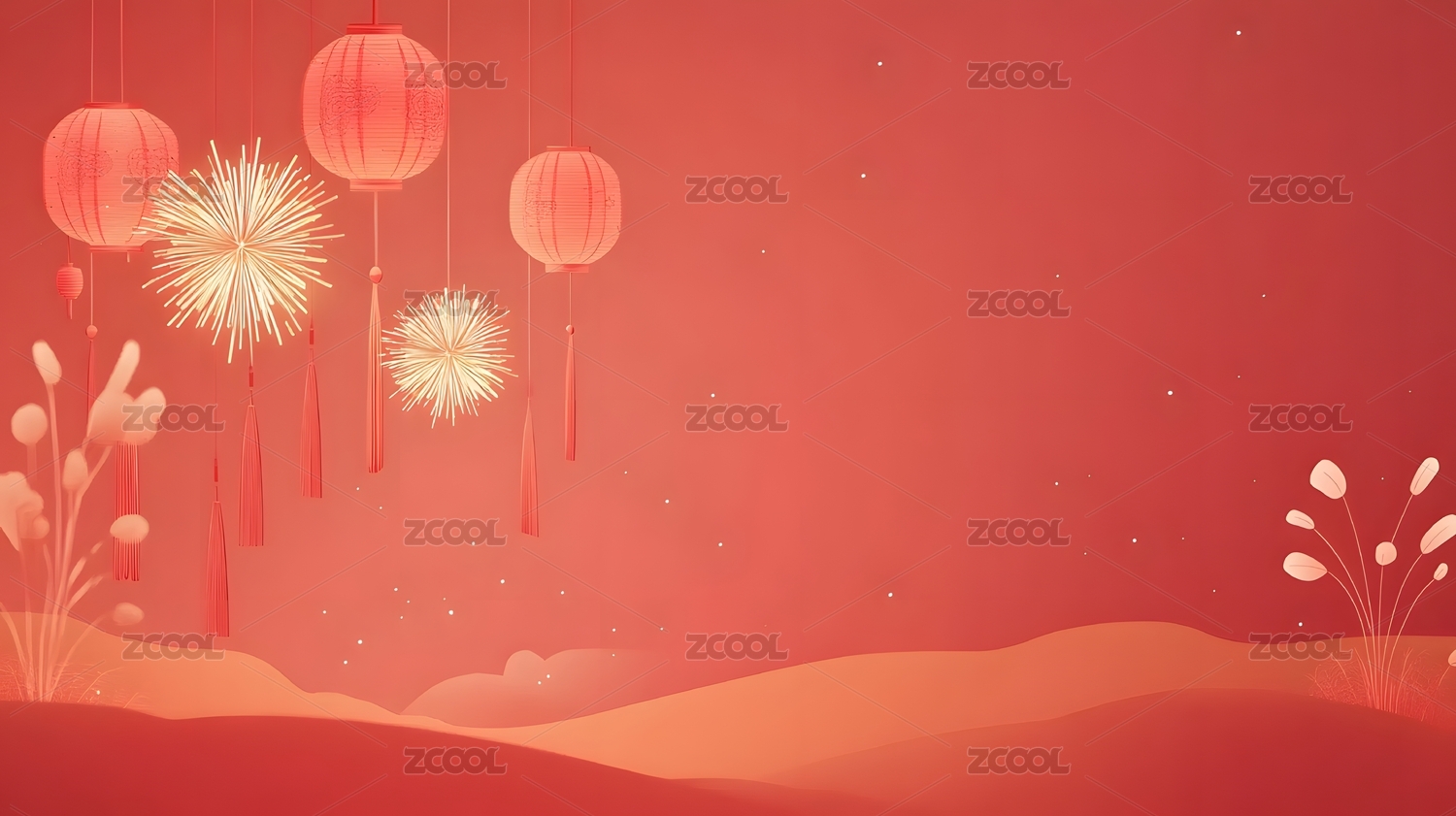 灯笼,节日,光影,草丛,烟花,夜景,山丘,飘花