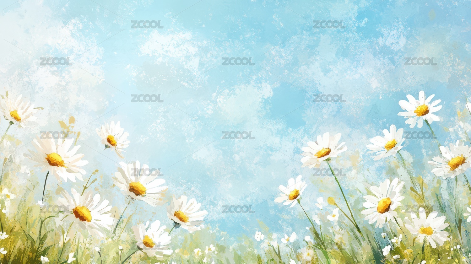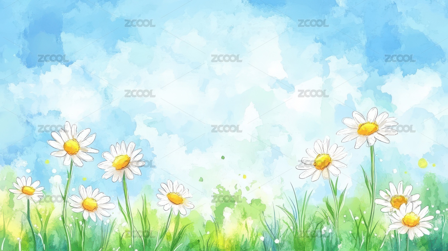 自然,唯美,雏菊,田野,花海,春日,蓝天,绿草