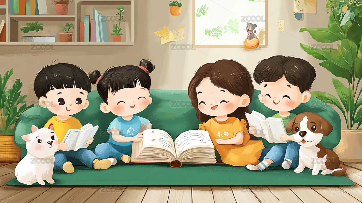 扁平风幼儿园老师课堂讲故事幼教绘本读书
