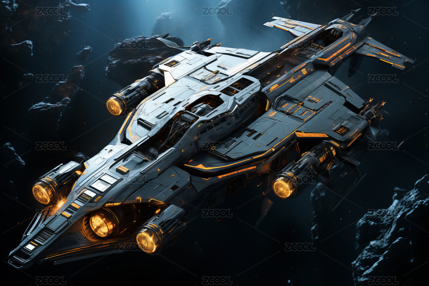 唯美的宇宙星辰中航行的巨大的飞船插画