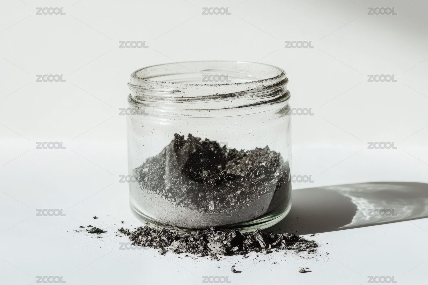 玻璃罐中的灰色粉末