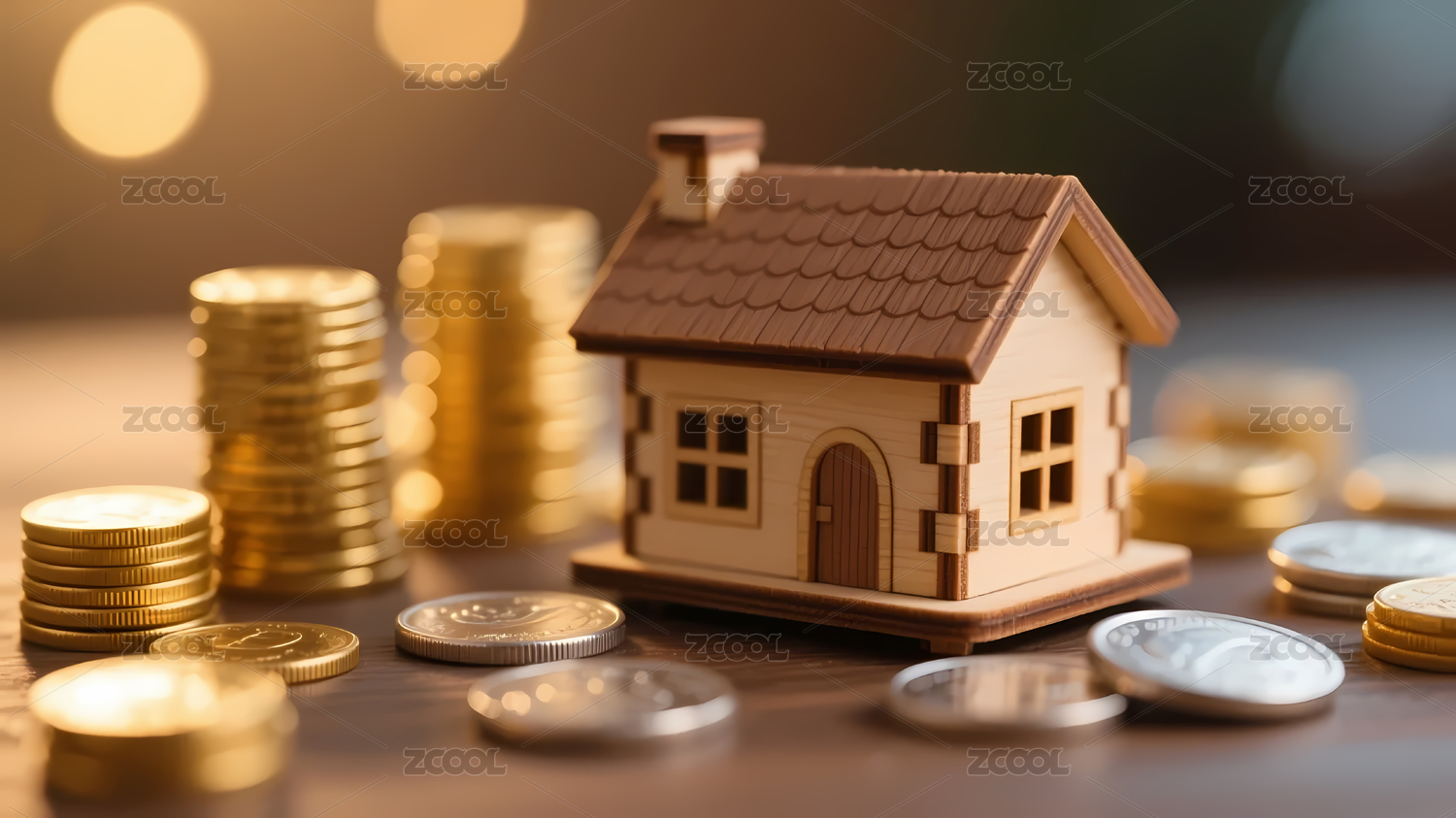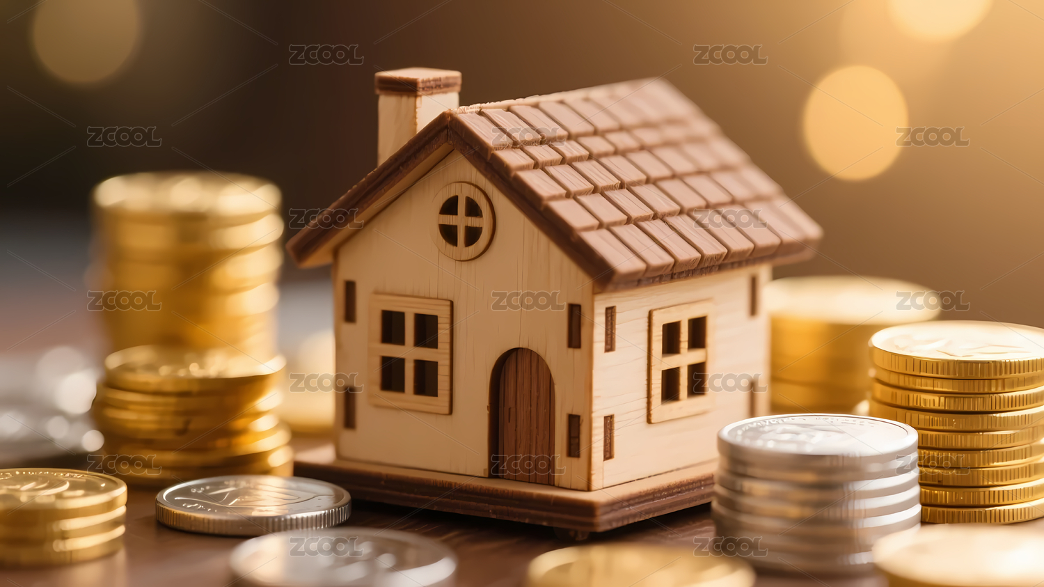 黑色,金色,装饰,质感,模型,简洁,财富,视觉,金币,小房子
