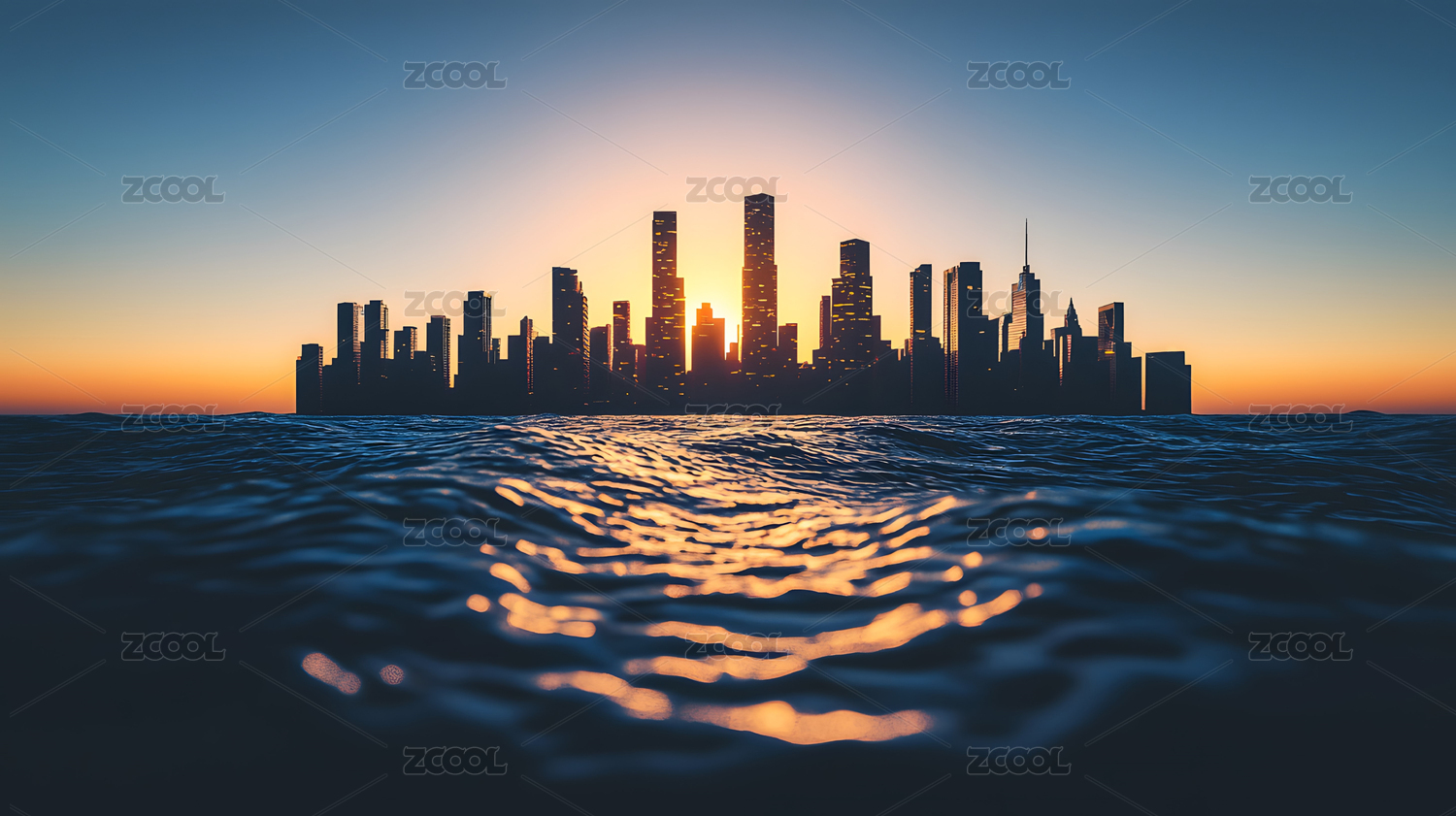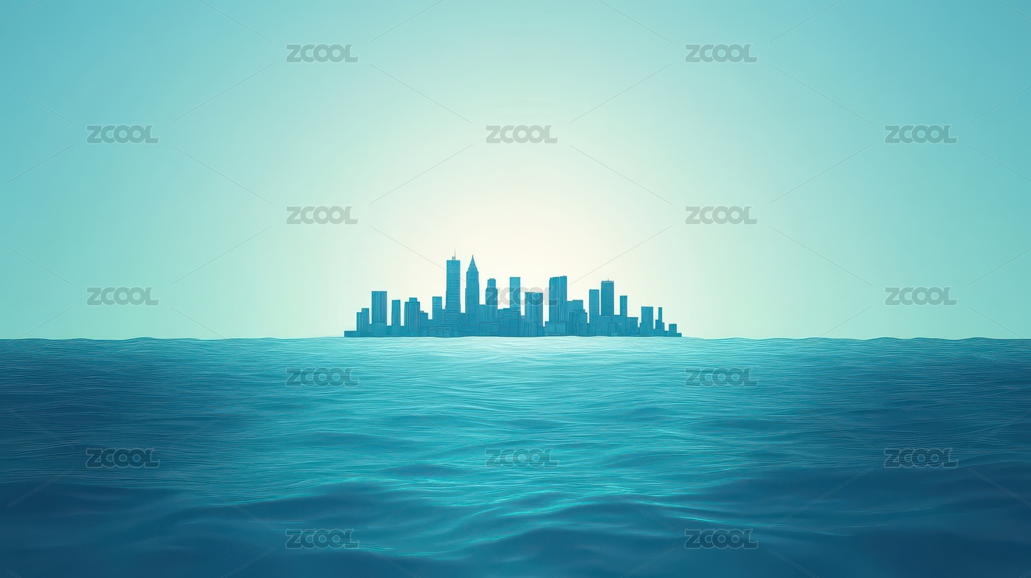 海中城市剪影景观