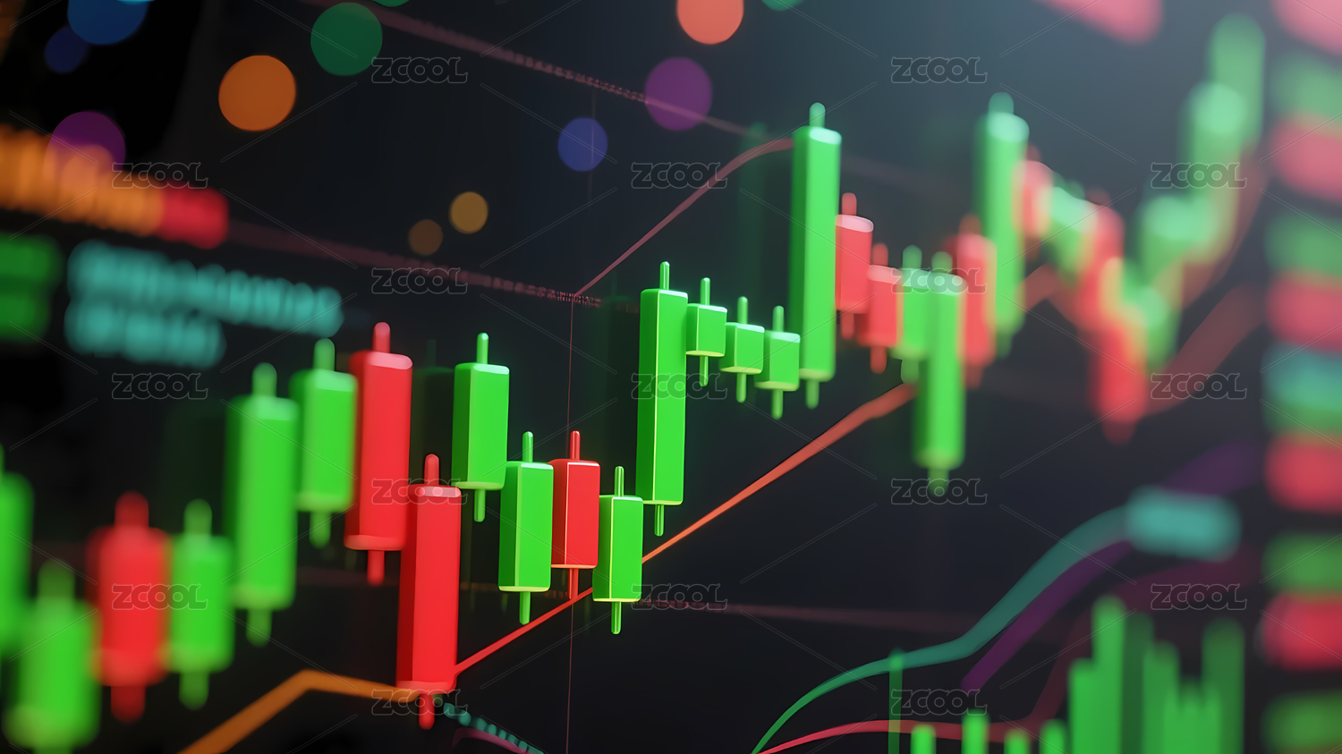 绿色,红色,深色,网格,市场,金融,股票,蜡烛图,趋势线,波动