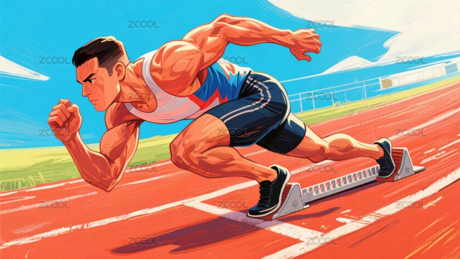 短跑者动感跑道场景