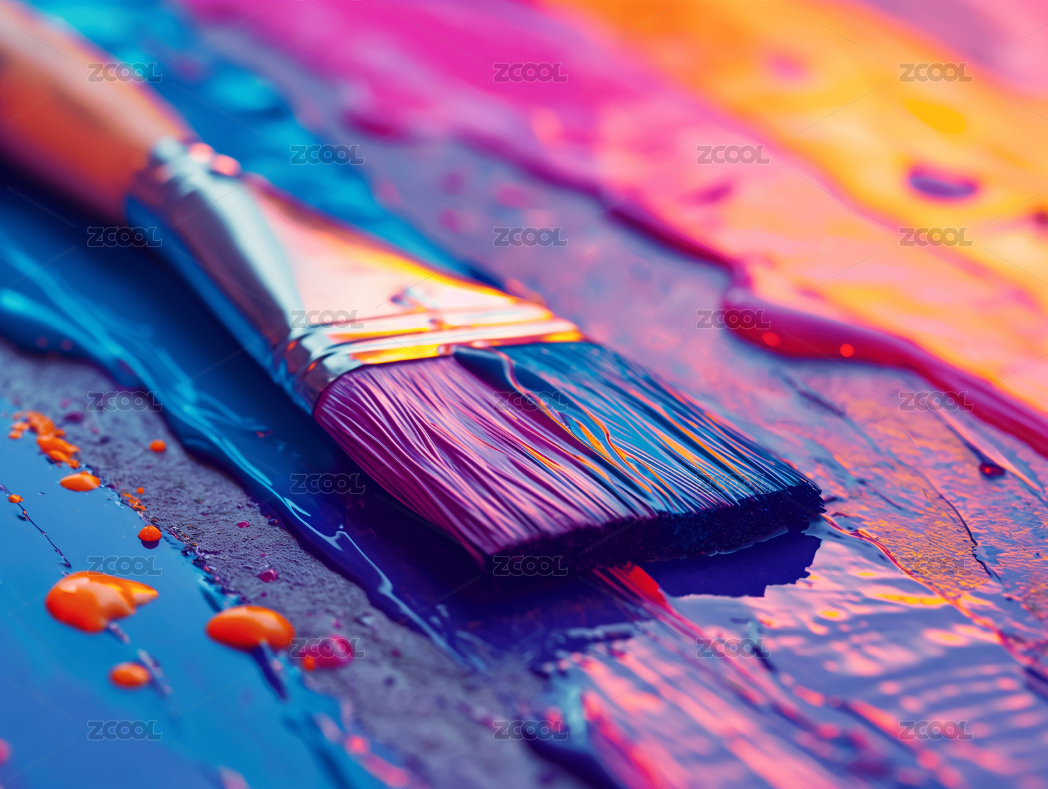 画笔涂抹彩色颜料