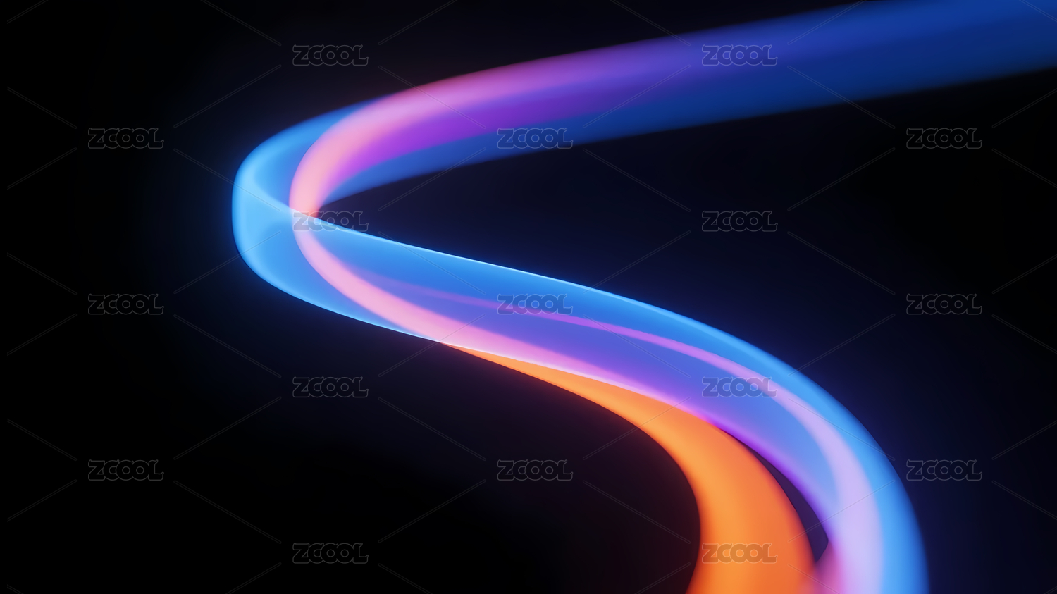 蓝橙光带流动映深蓝底