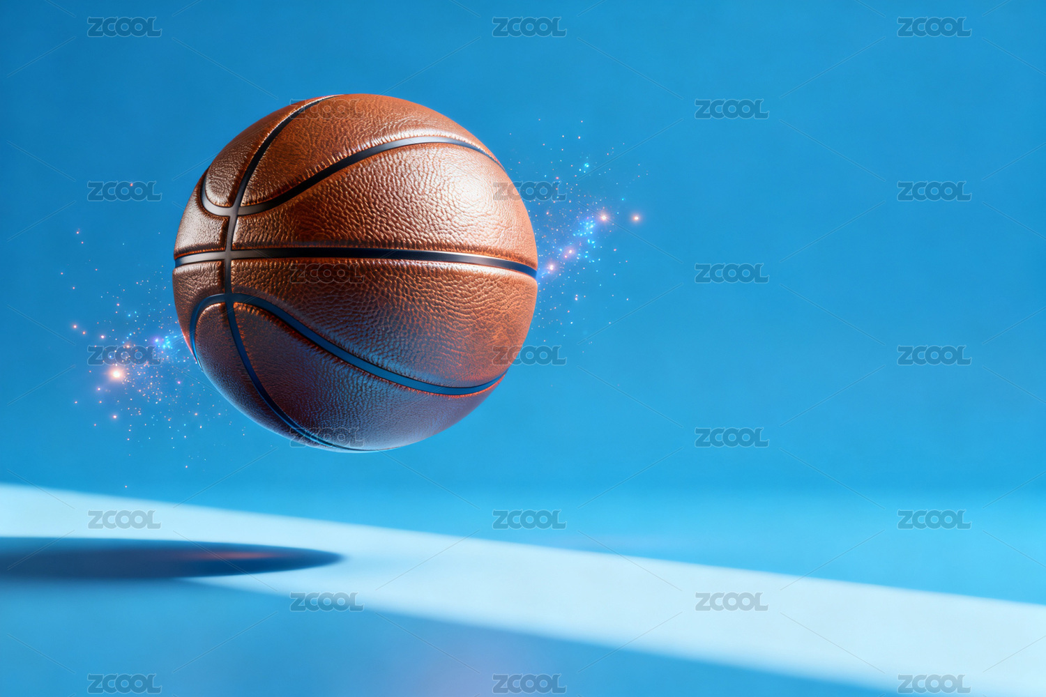 篮球悬浮蓝色背景闪耀