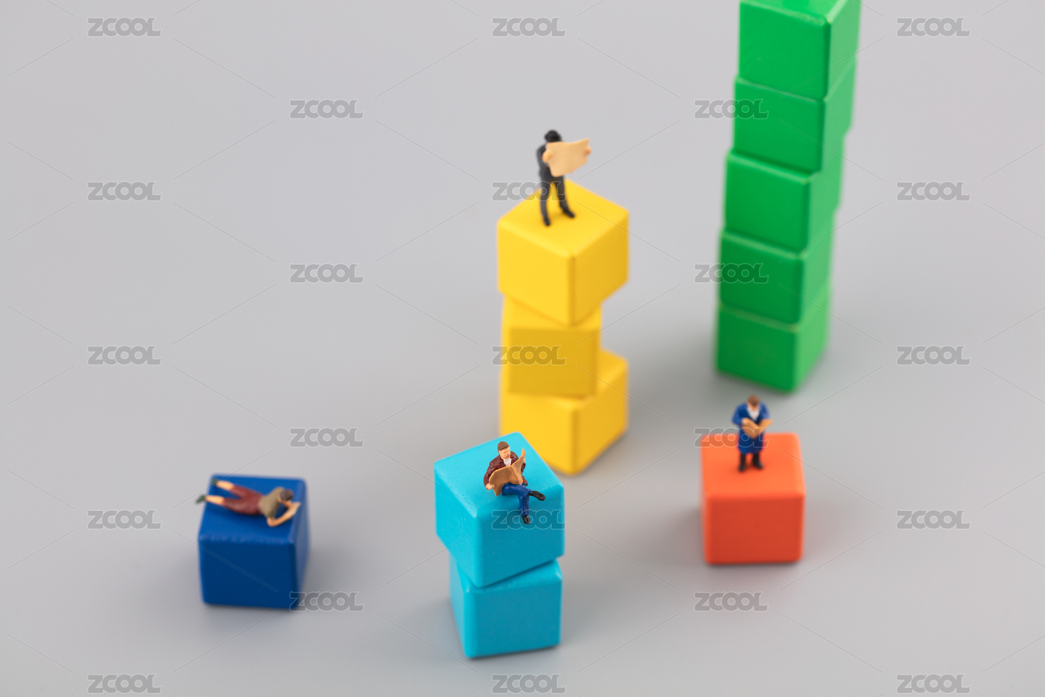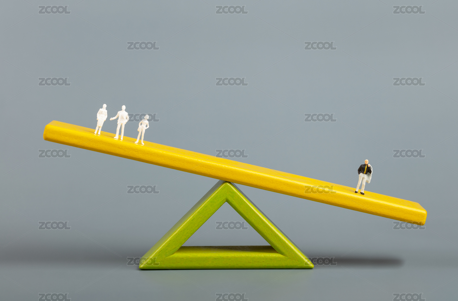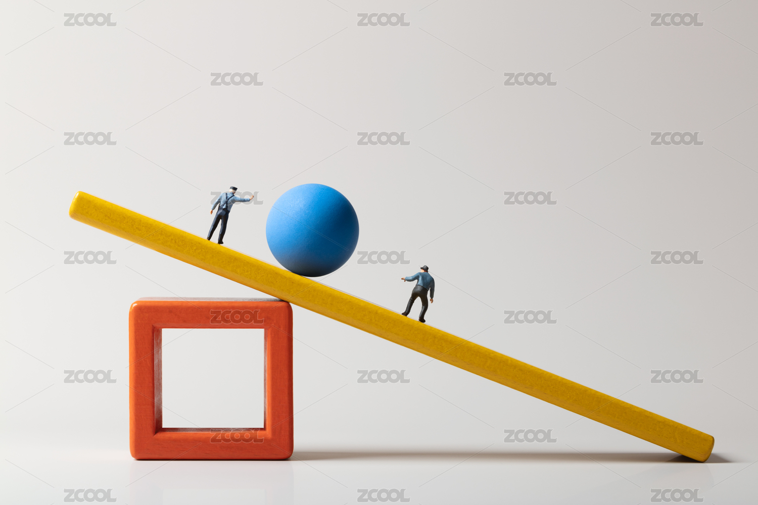 微缩创意斜坡下滚下的圆球与惊慌的人