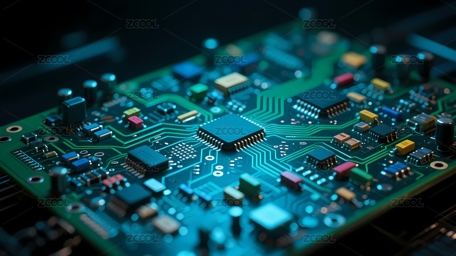 绿色,电路板,主体,设计,深色,芯片,细节,电子元件,放大镜,观察