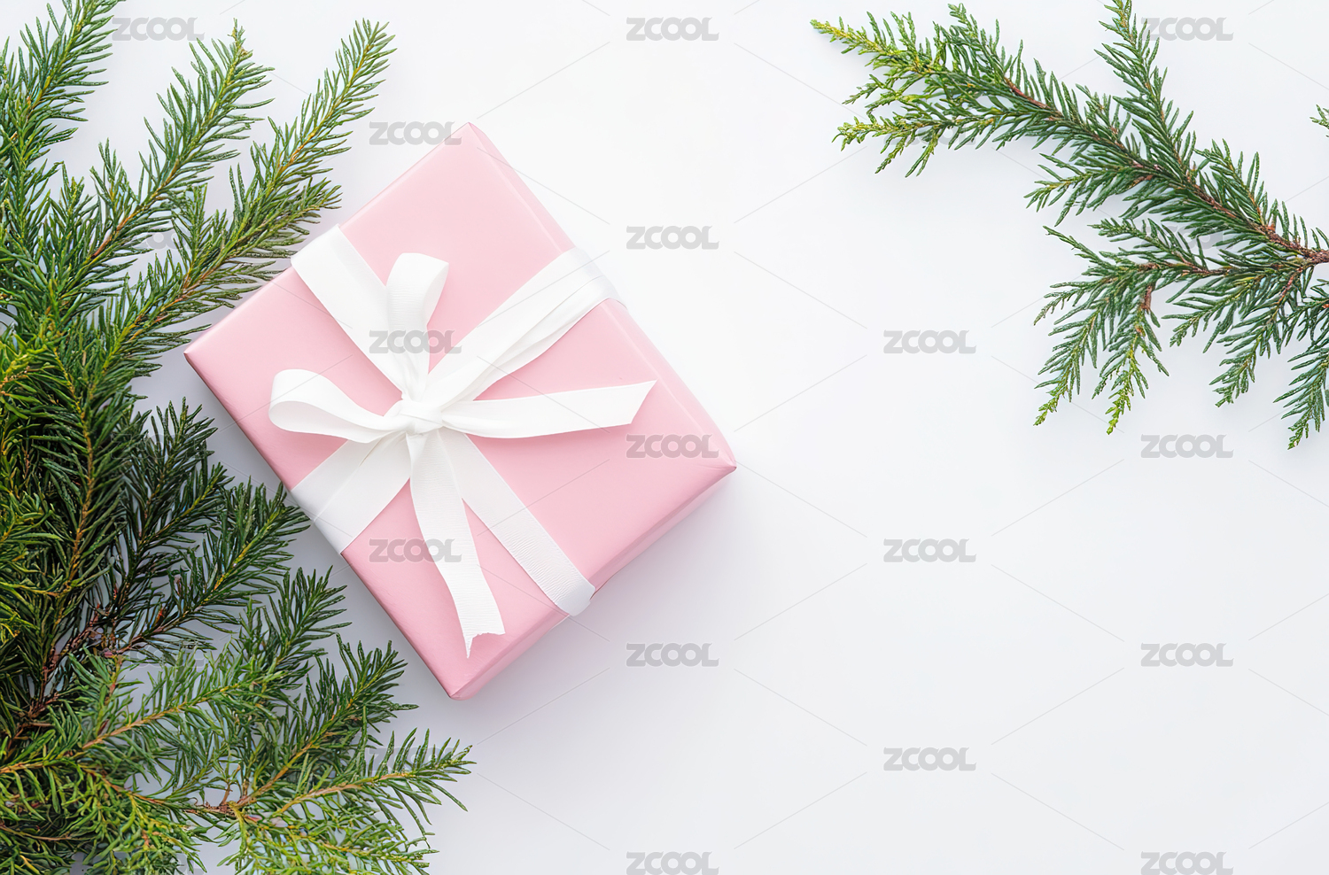 圣诞节礼物与松枝装饰