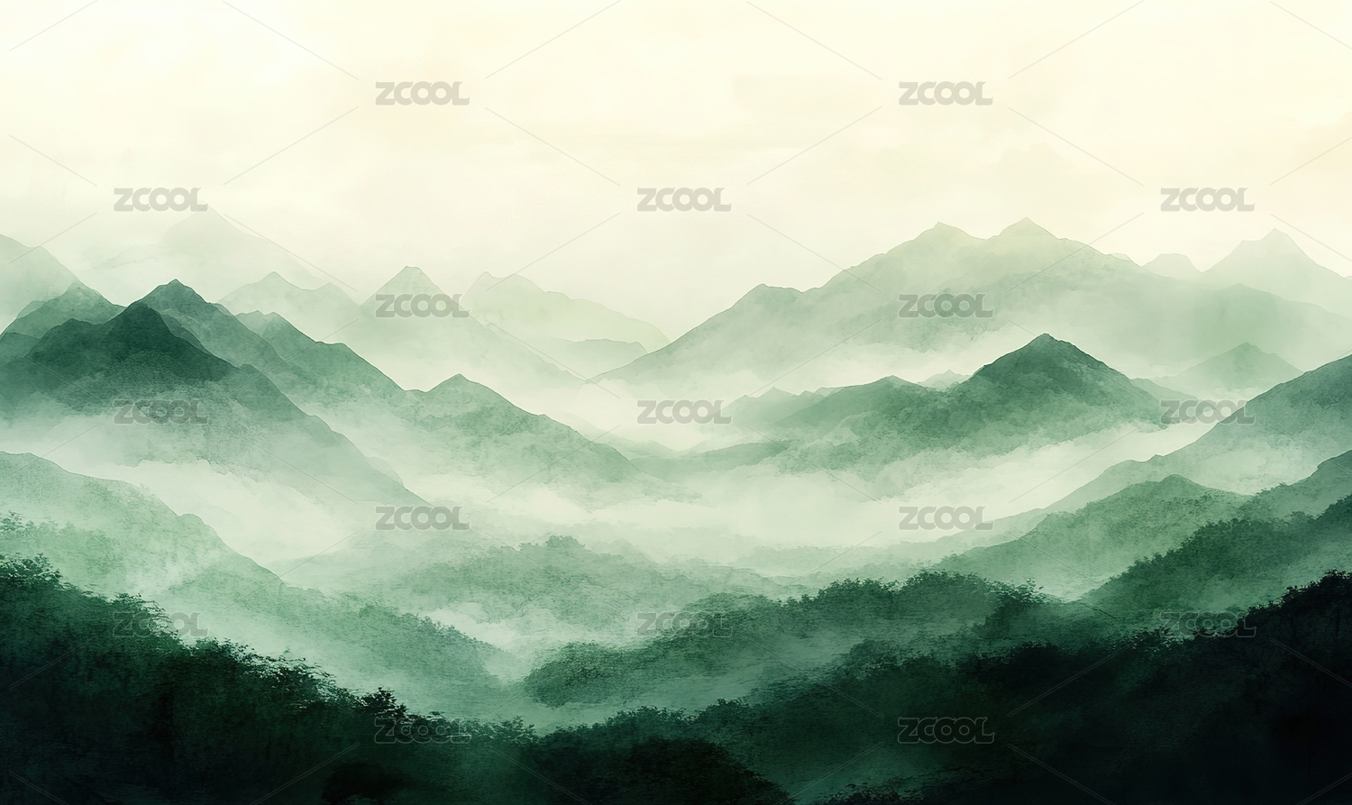 静谧,自然,淡雅,云雾,山峦,晨曦,森林,翠绿