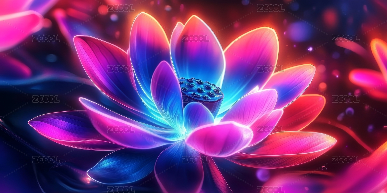 魔法发光睡莲在水塘中美丽盛开的特写插图
