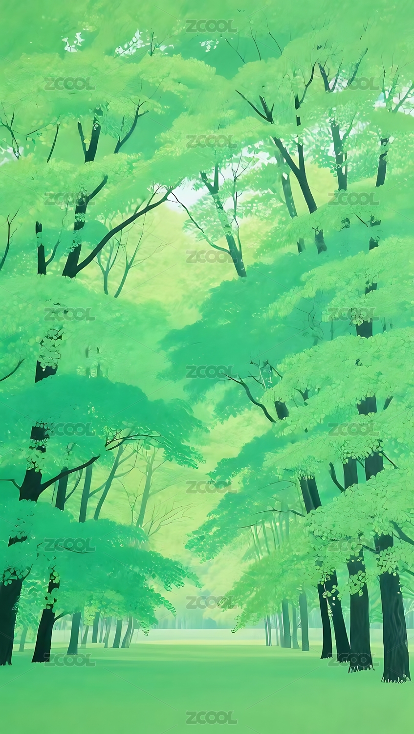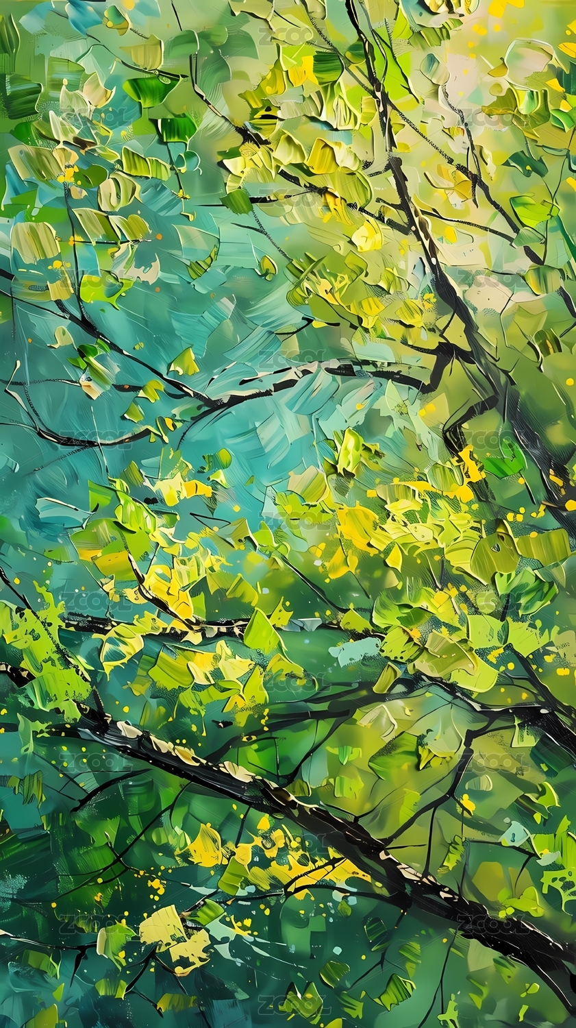 印象派,手绘,油画,茂密,绿色,森林,风光,背景,插画,涂鸦