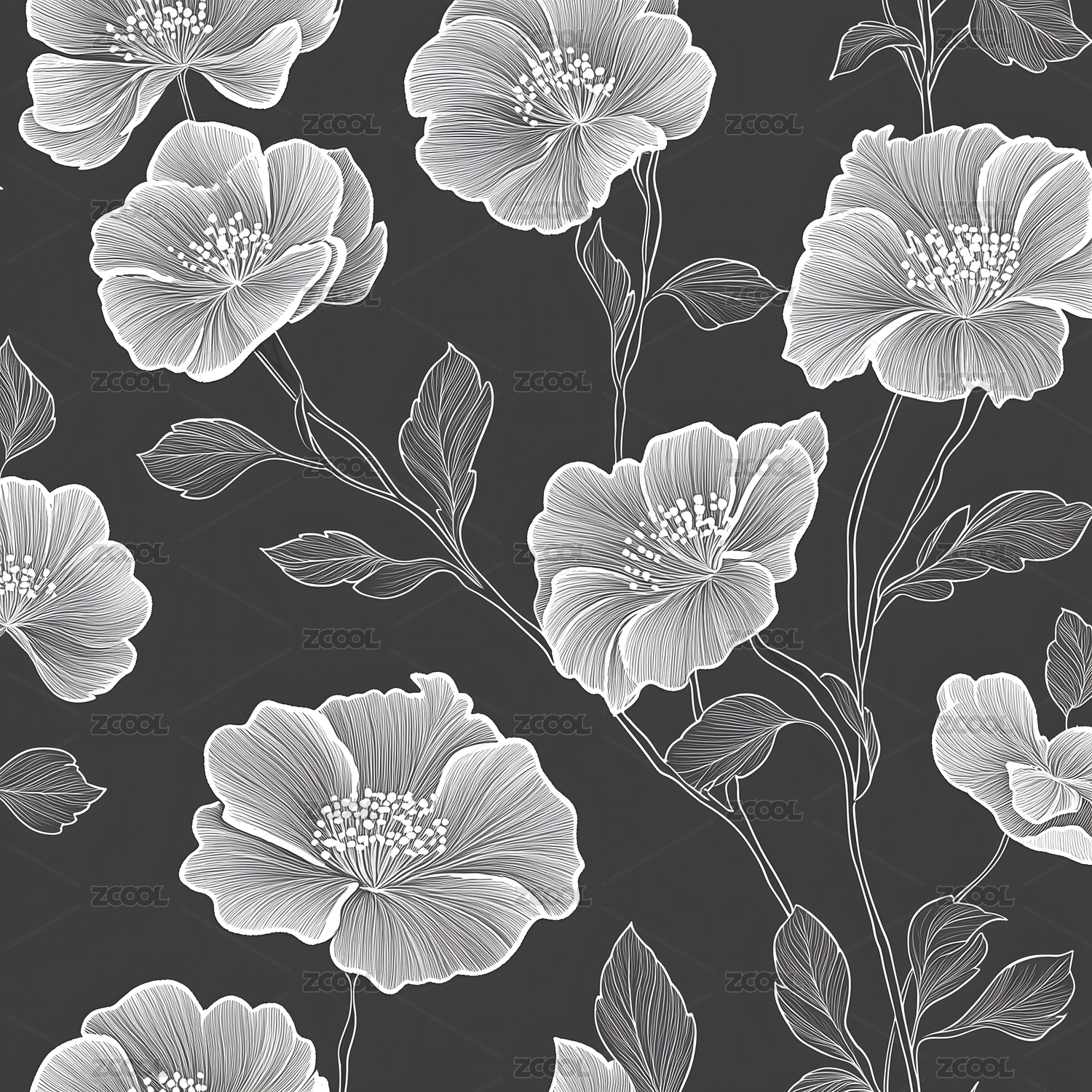 黑白简约花卉图案