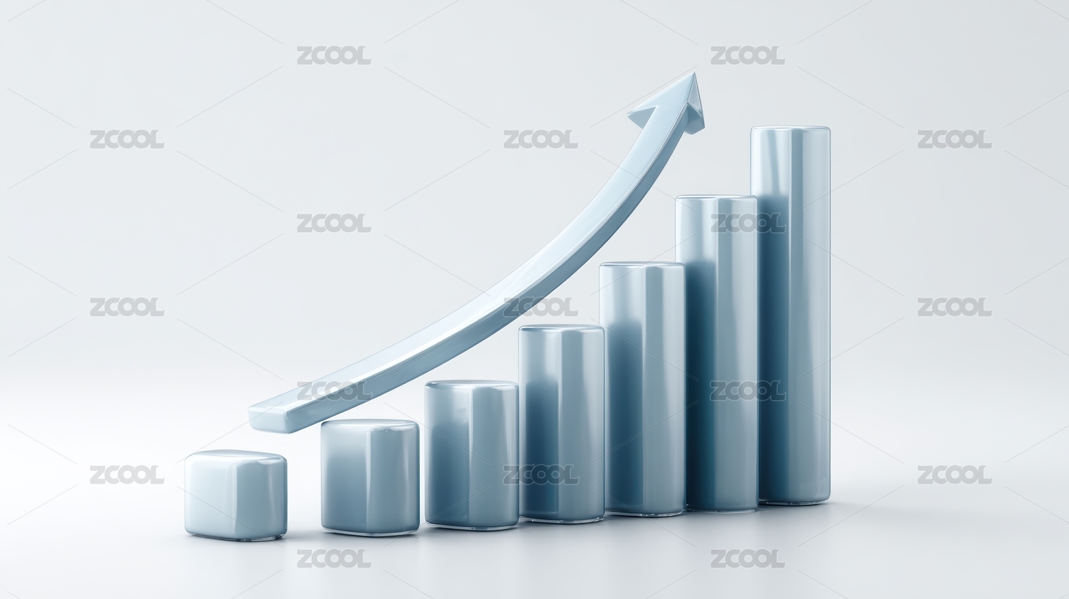 蓝色渐变玻璃质感金融柱状图增长箭头背景