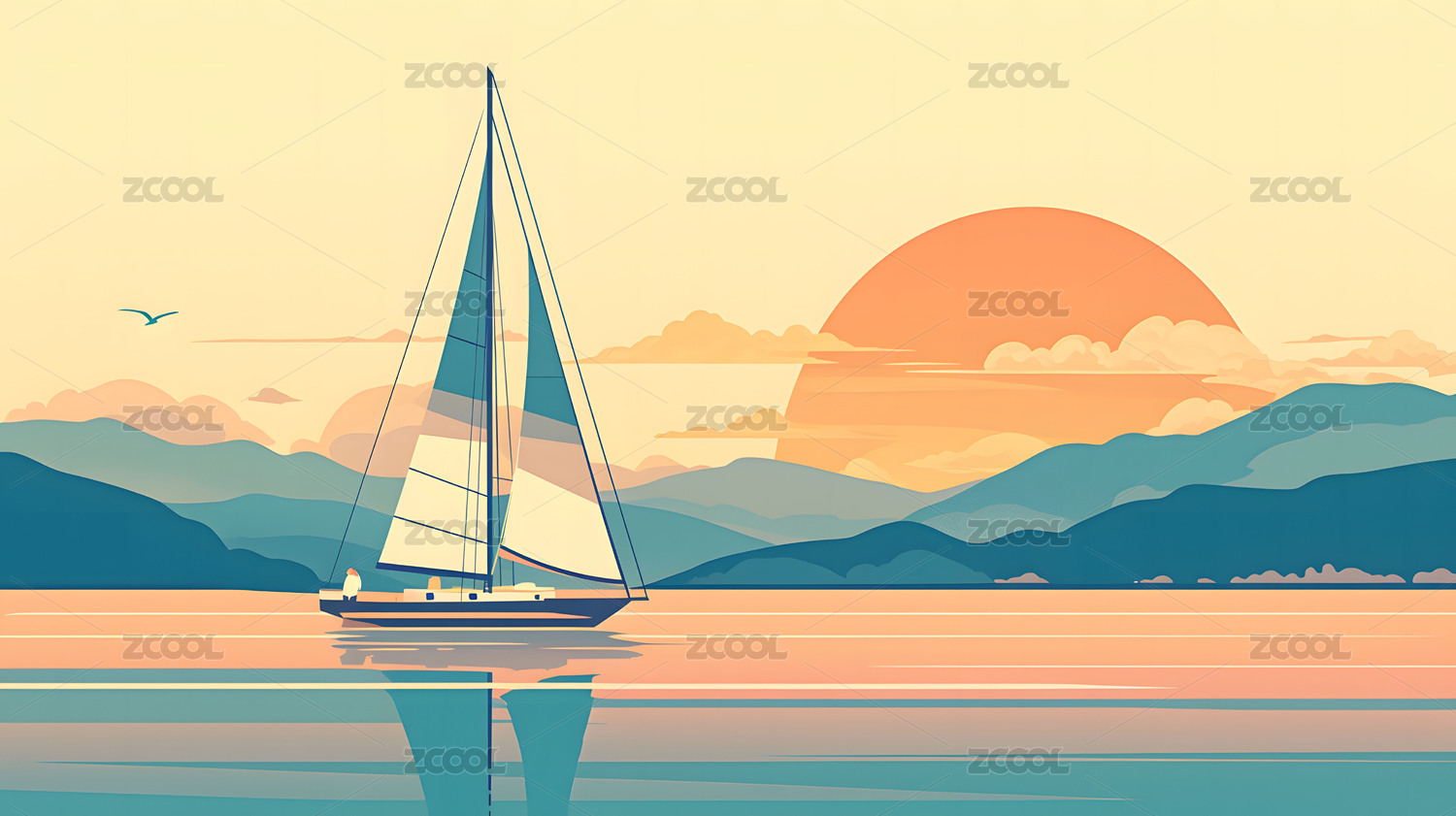 国庆假日出发旅游卡通豪华轮船交通运输插画