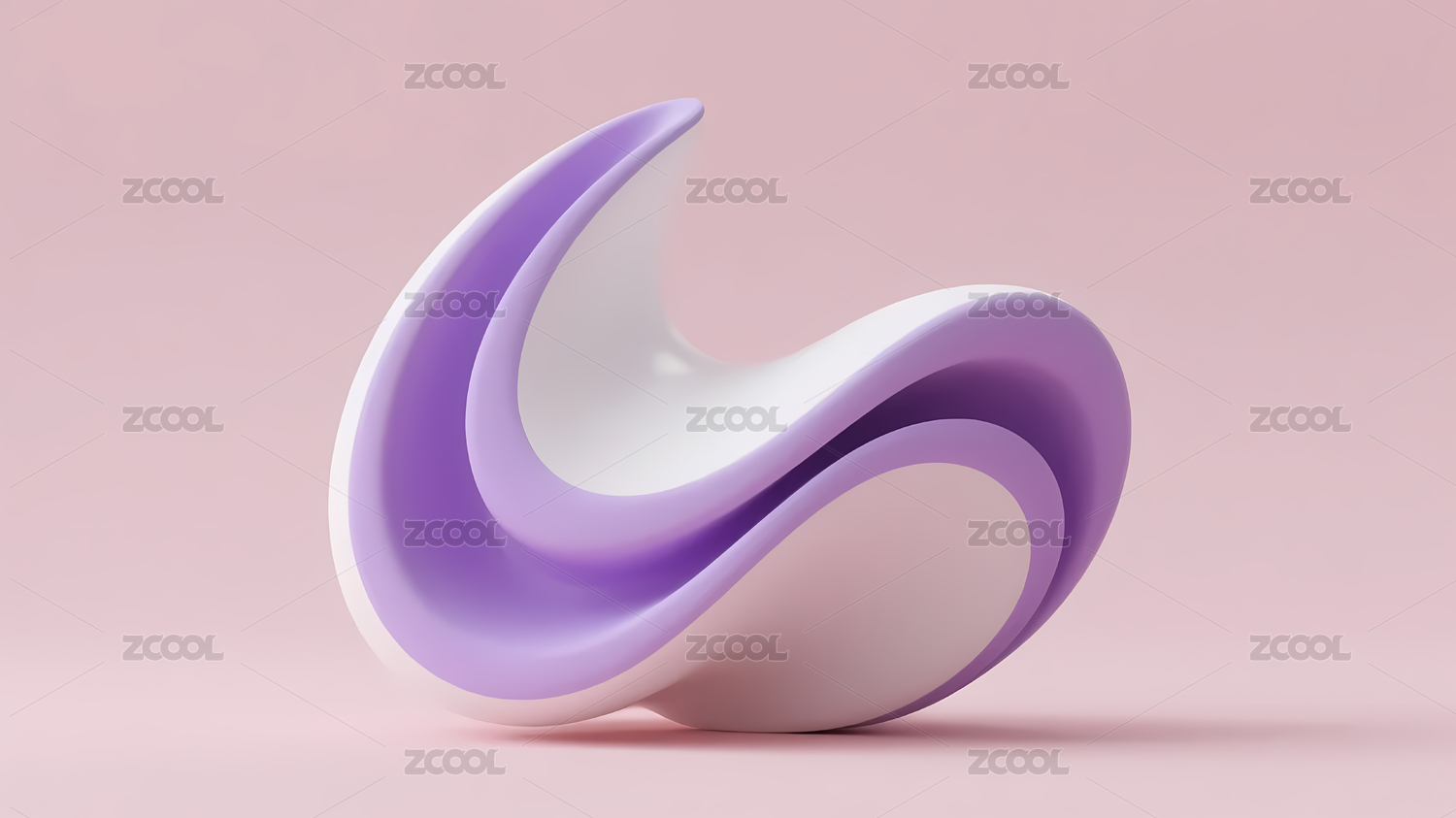 抽象,雕塑,艺术,曲线,渐变,光滑,紫色,形状,3D渲染