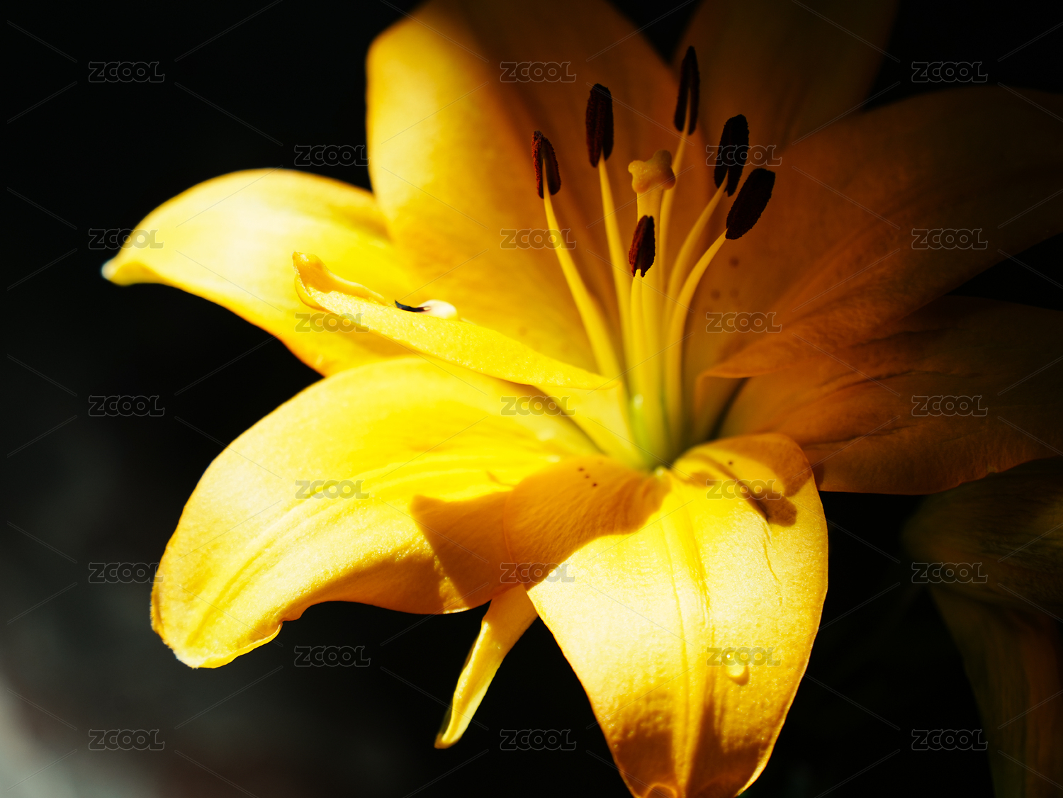 百合花,黄色,光影,特写,花瓣,花蕊,绽放,盛开,花卉,唯美
