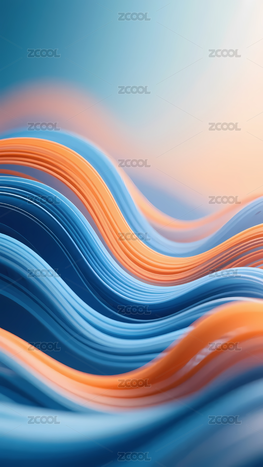 蓝色橙色交织的动感波浪