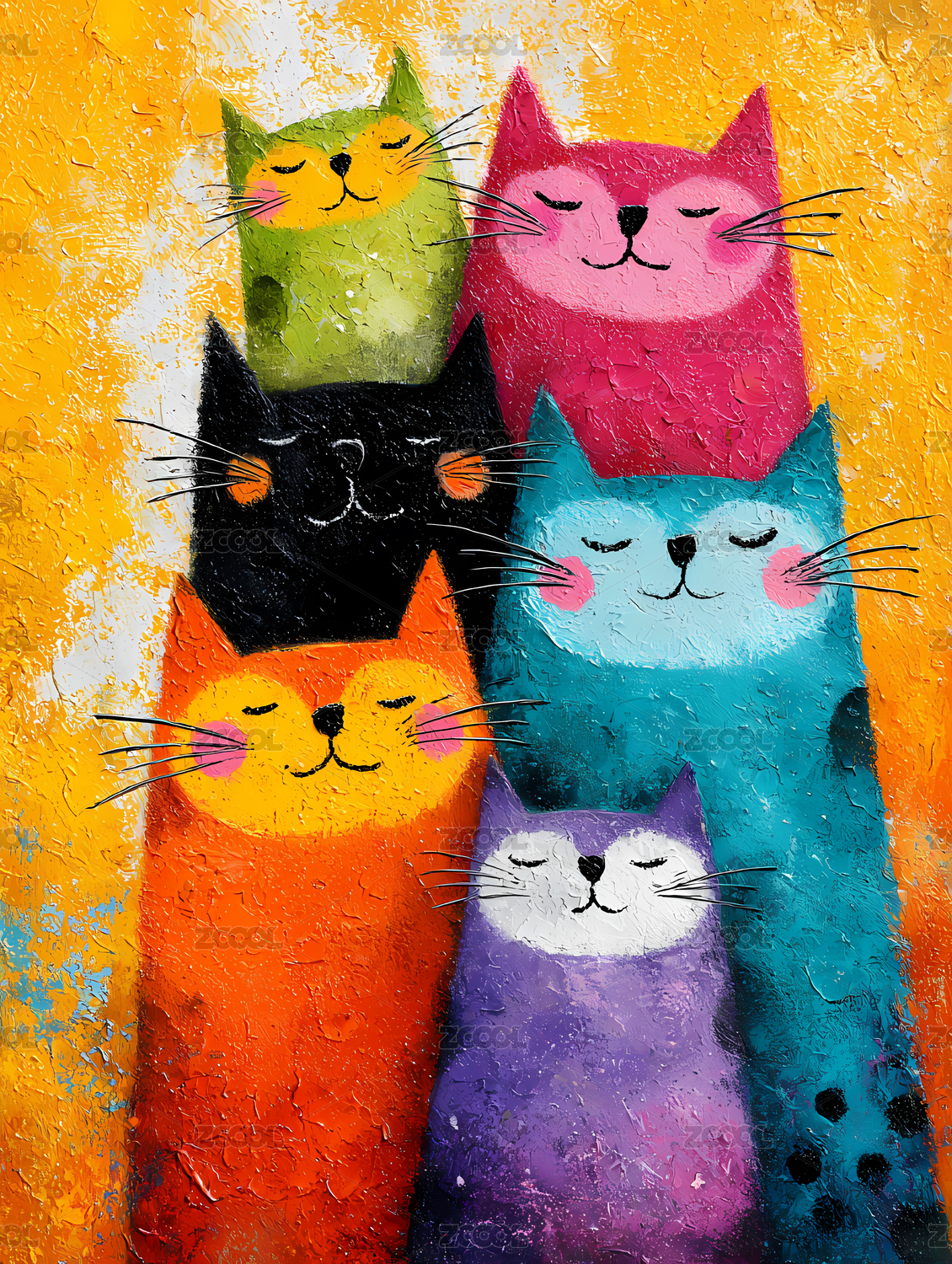 可爱猫表情贴纸时尚卡通涂鸦壁纸插画