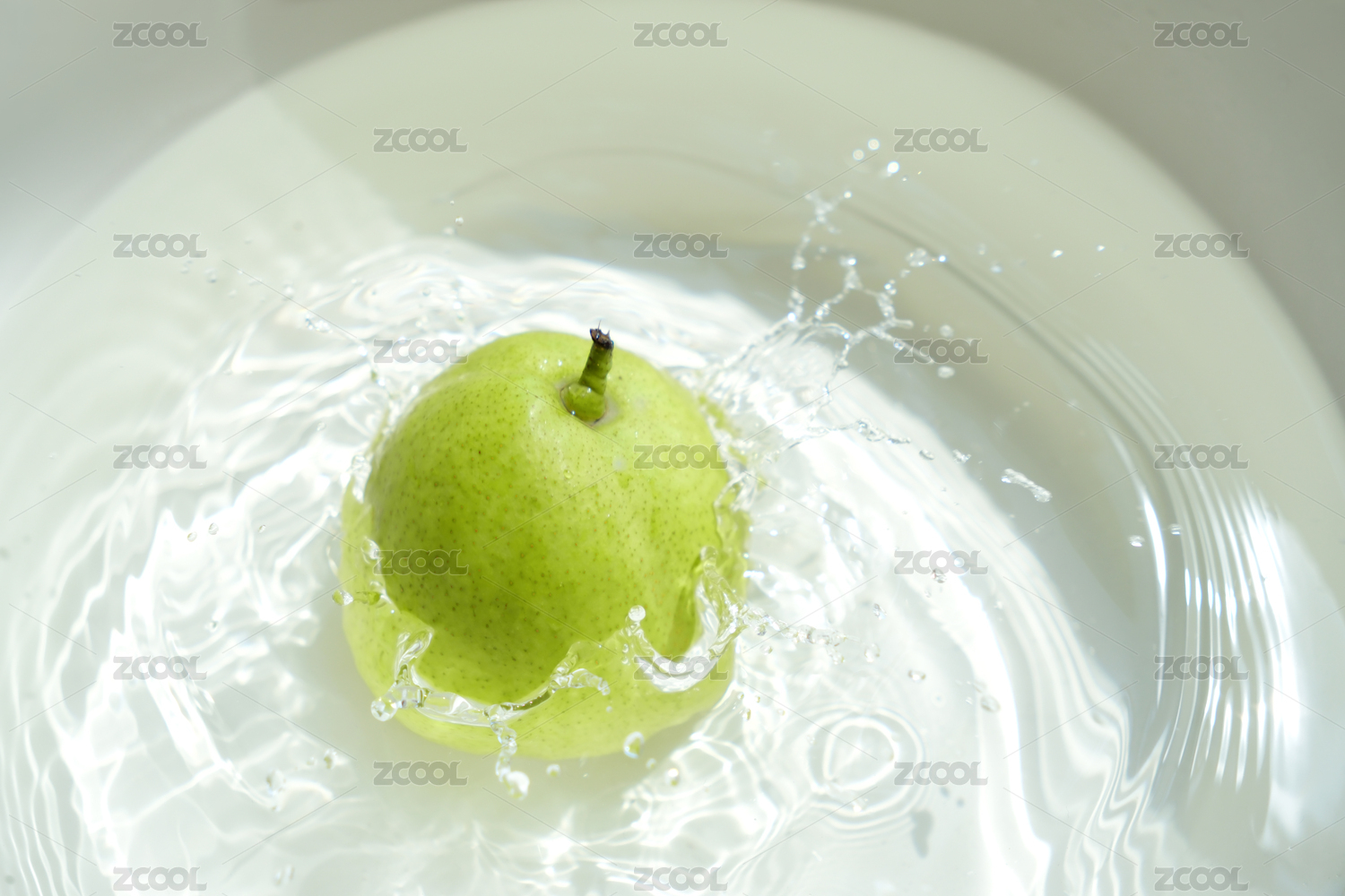 梨子,青梨,果实,绿色,水果,水波,水滴,飞溅,水花,清新