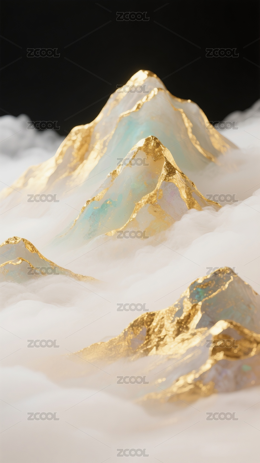 新中式国风金箔岩彩矿物云端山川立体绘画