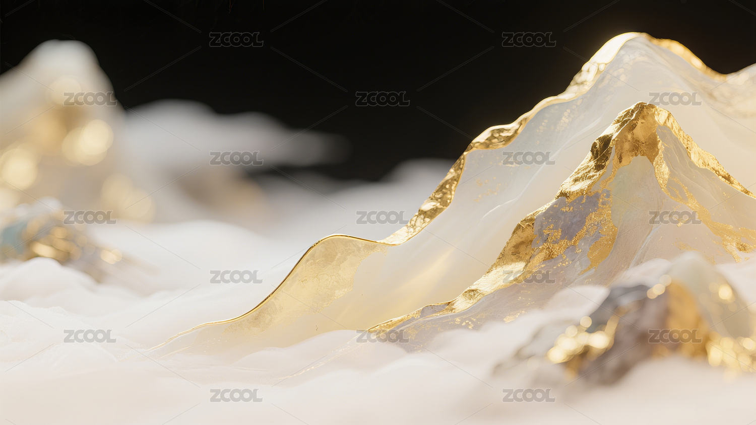 金箔,岩彩,金边,山峦,天然矿物染料,磨砂肌理绘画