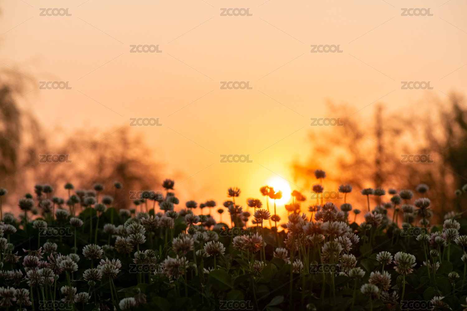 早晨阳光下的白车轴草