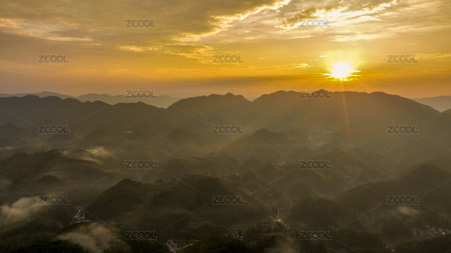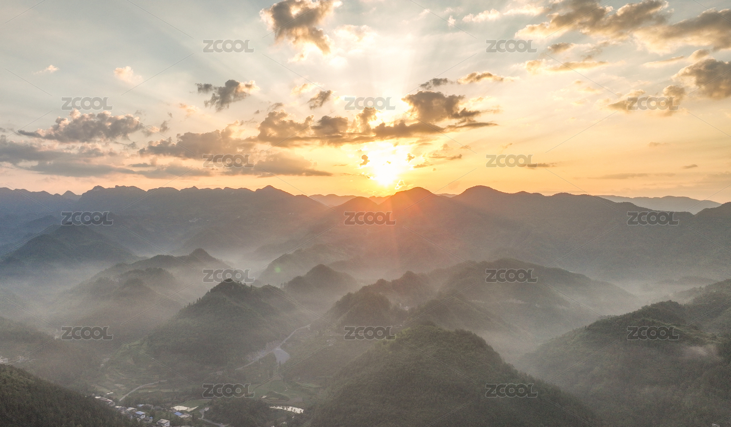 亚洲,中国,重庆,酉阳,夏日,日出,彩霞,薄雾,群山,河流