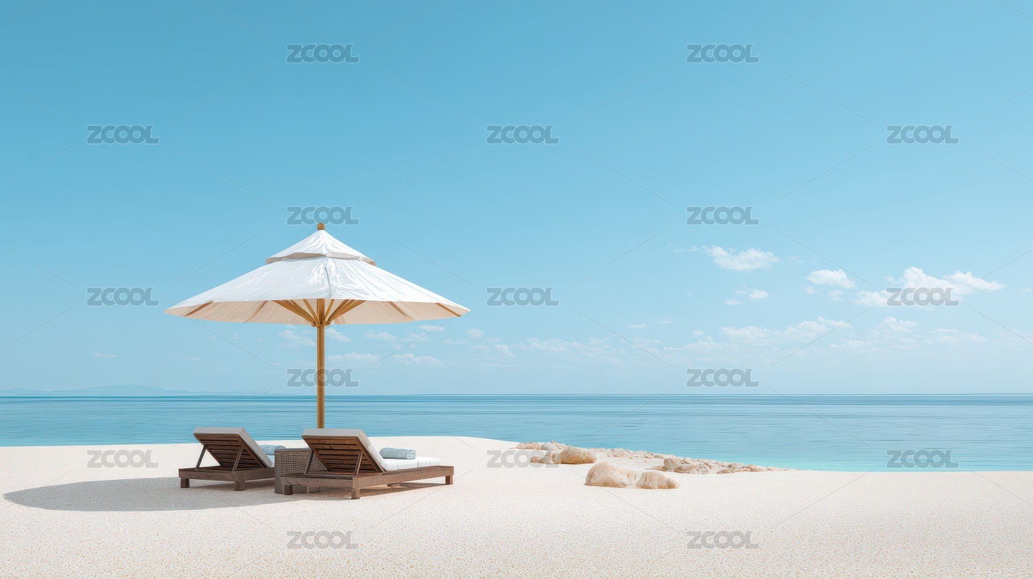 休闲,蓝天,椰树,沙滩,海水,白云,躺椅,遮阳伞,度假