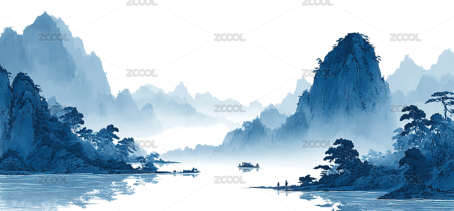 艺术,山峰,云雾,意境,朦胧,树木,山水,墨色,湖泊,水墨画