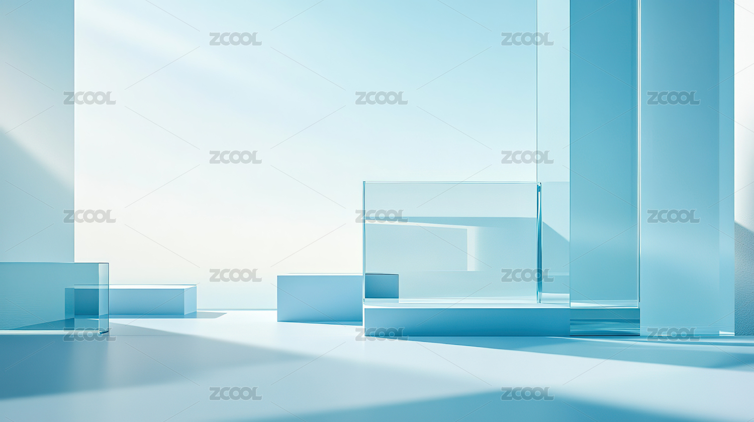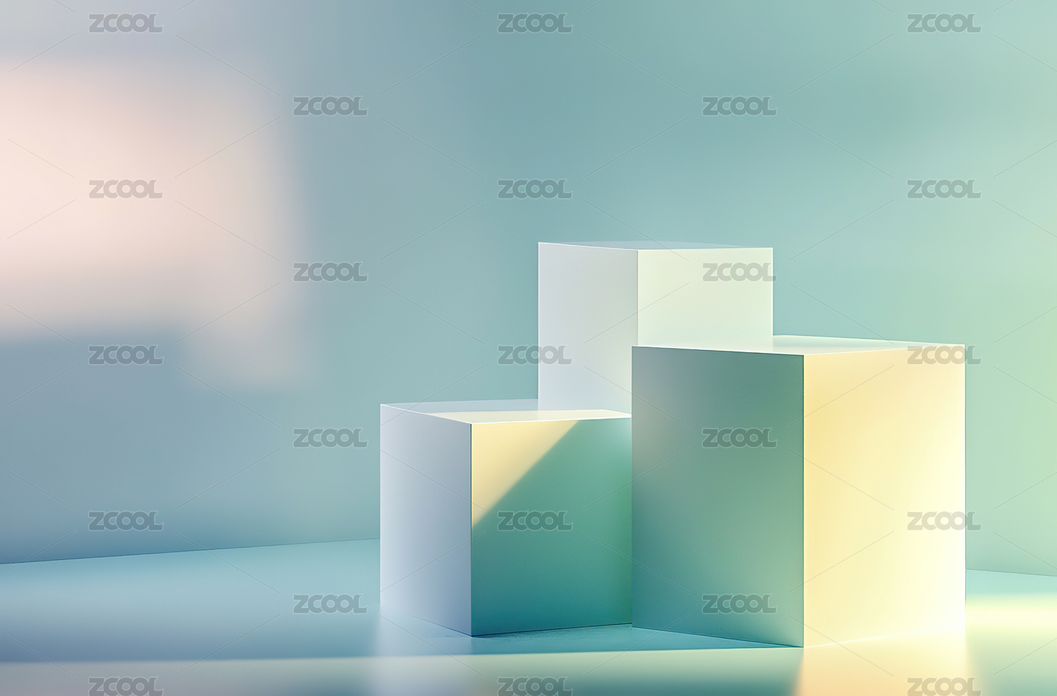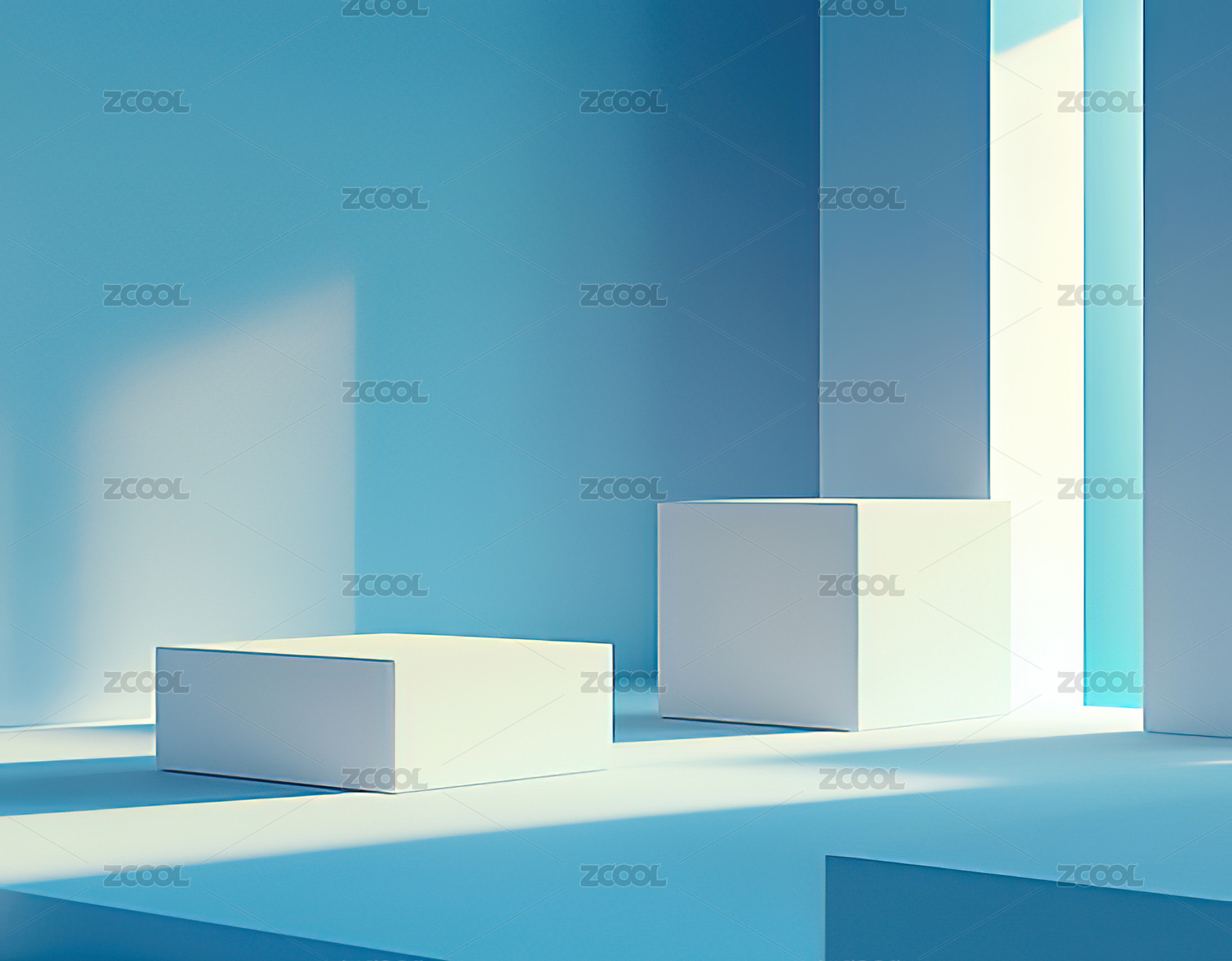 蓝色,几何,柔和,氛围,简约,虚幻,场景,干净,立方体,平台