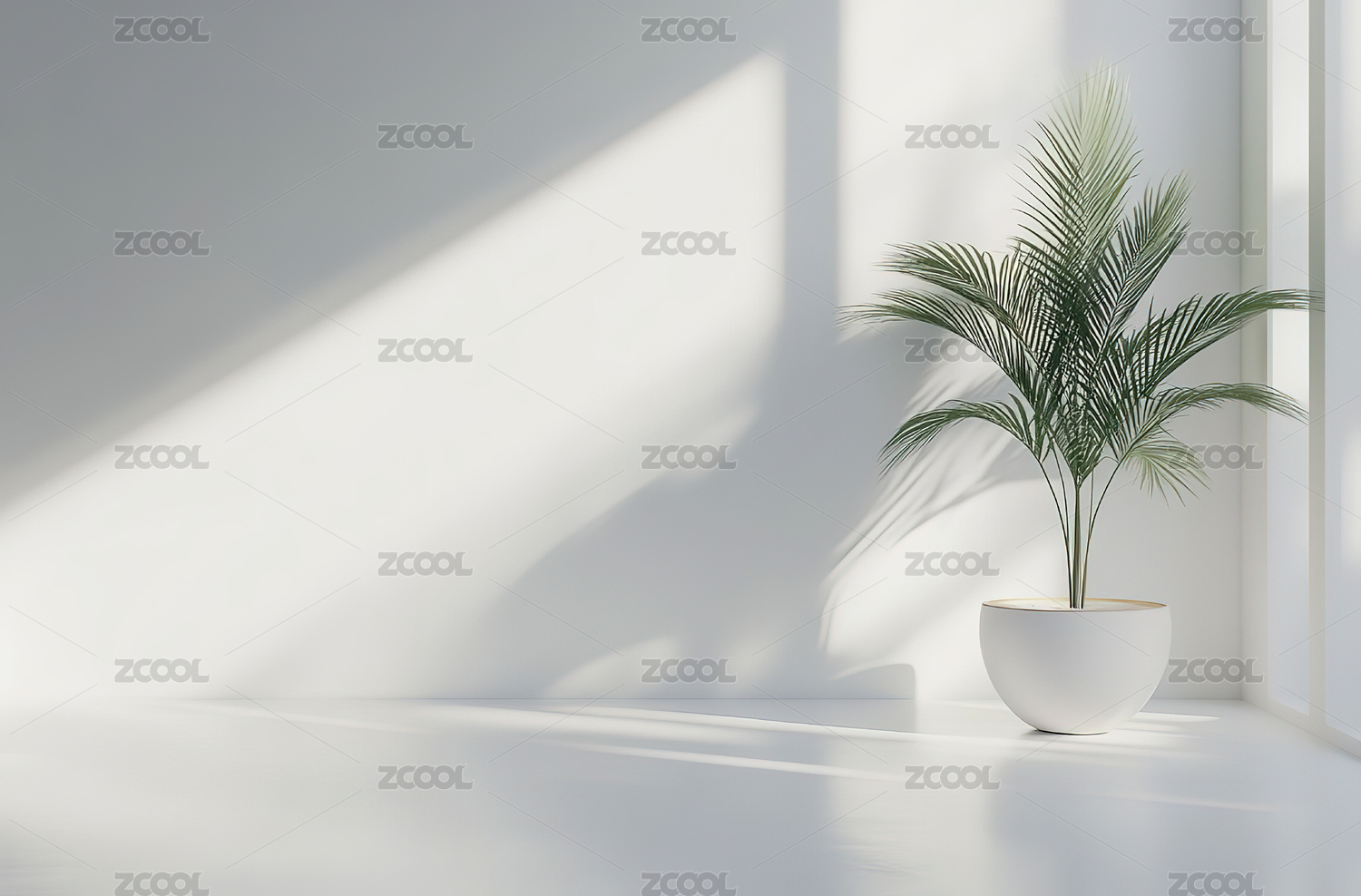 室内空间一盆绿植和投进窗户的阳光