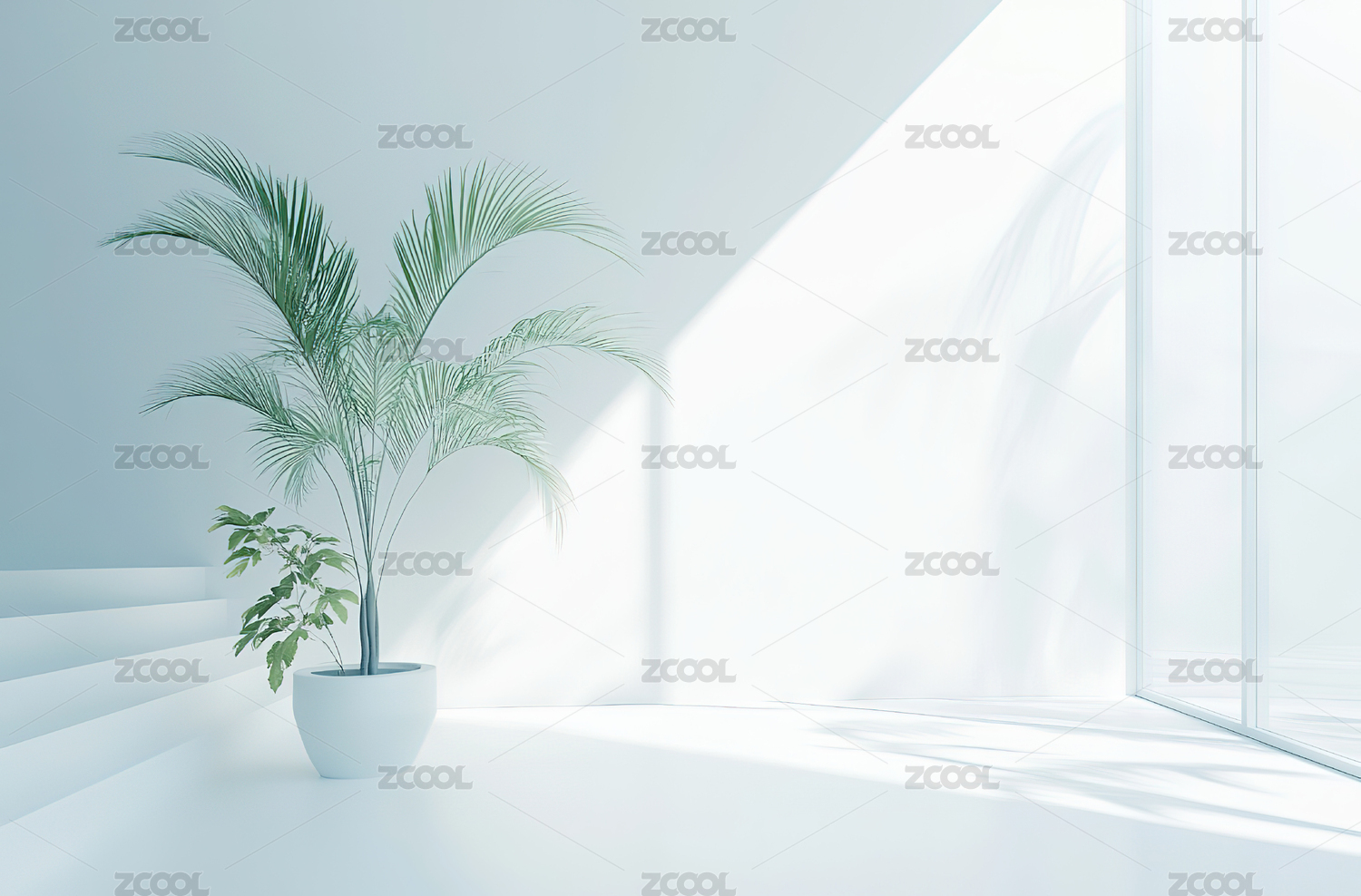 光影中的绿植与几何空间