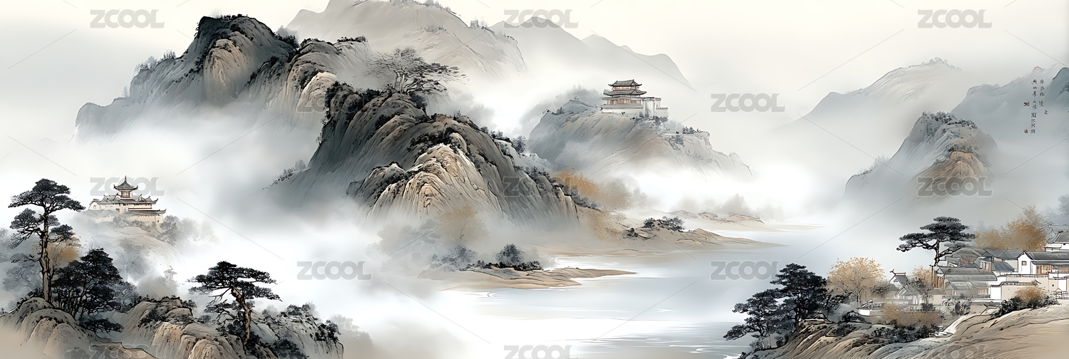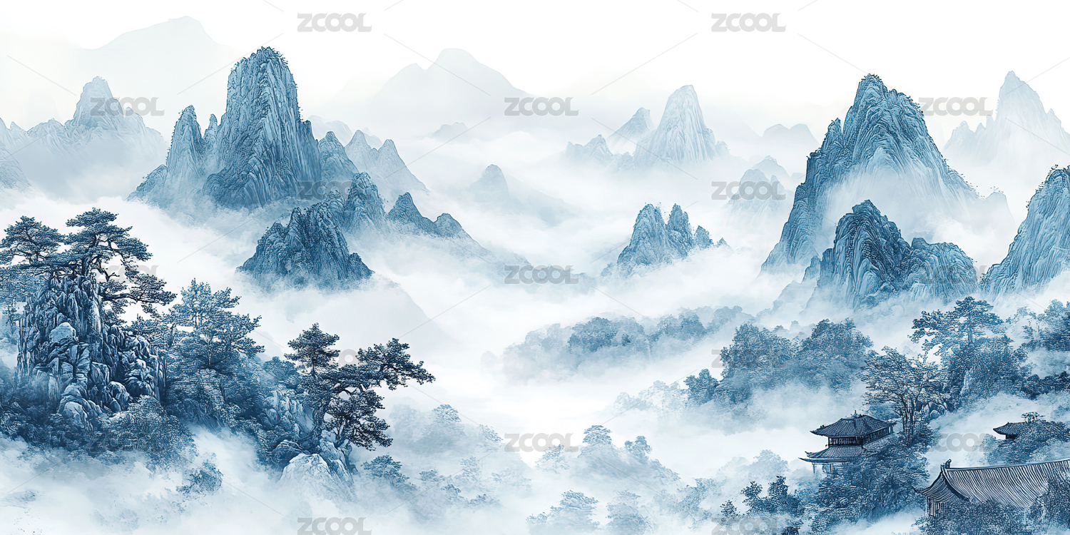 山峰,云雾,朦胧,意境,景观,水面,唯美,墨色,柔和,山峦