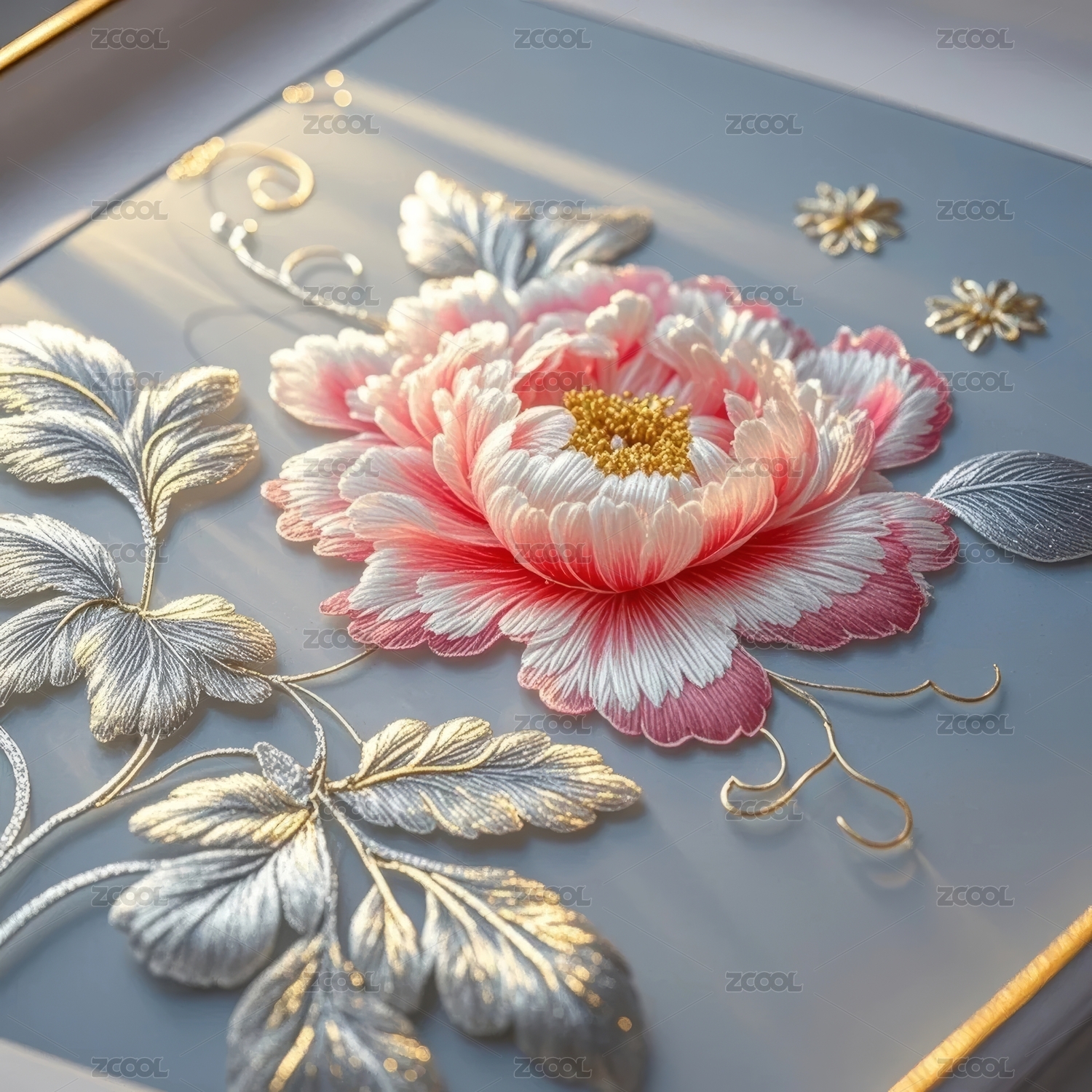 刺绣牡丹典雅场景
