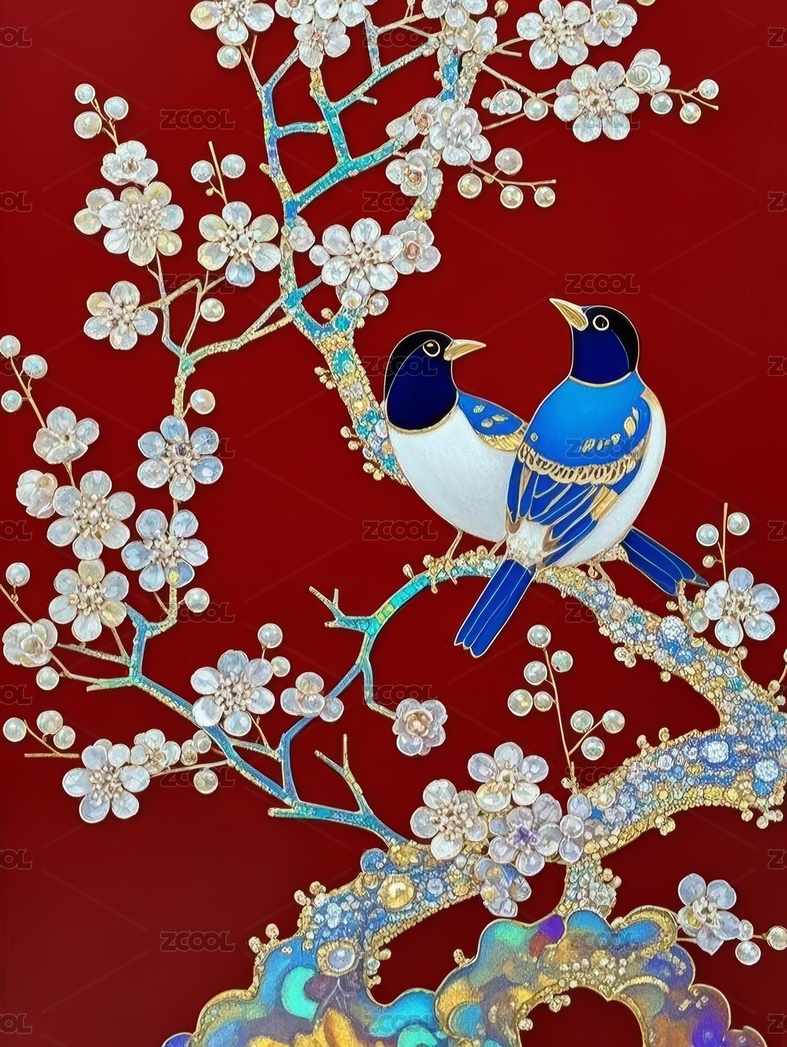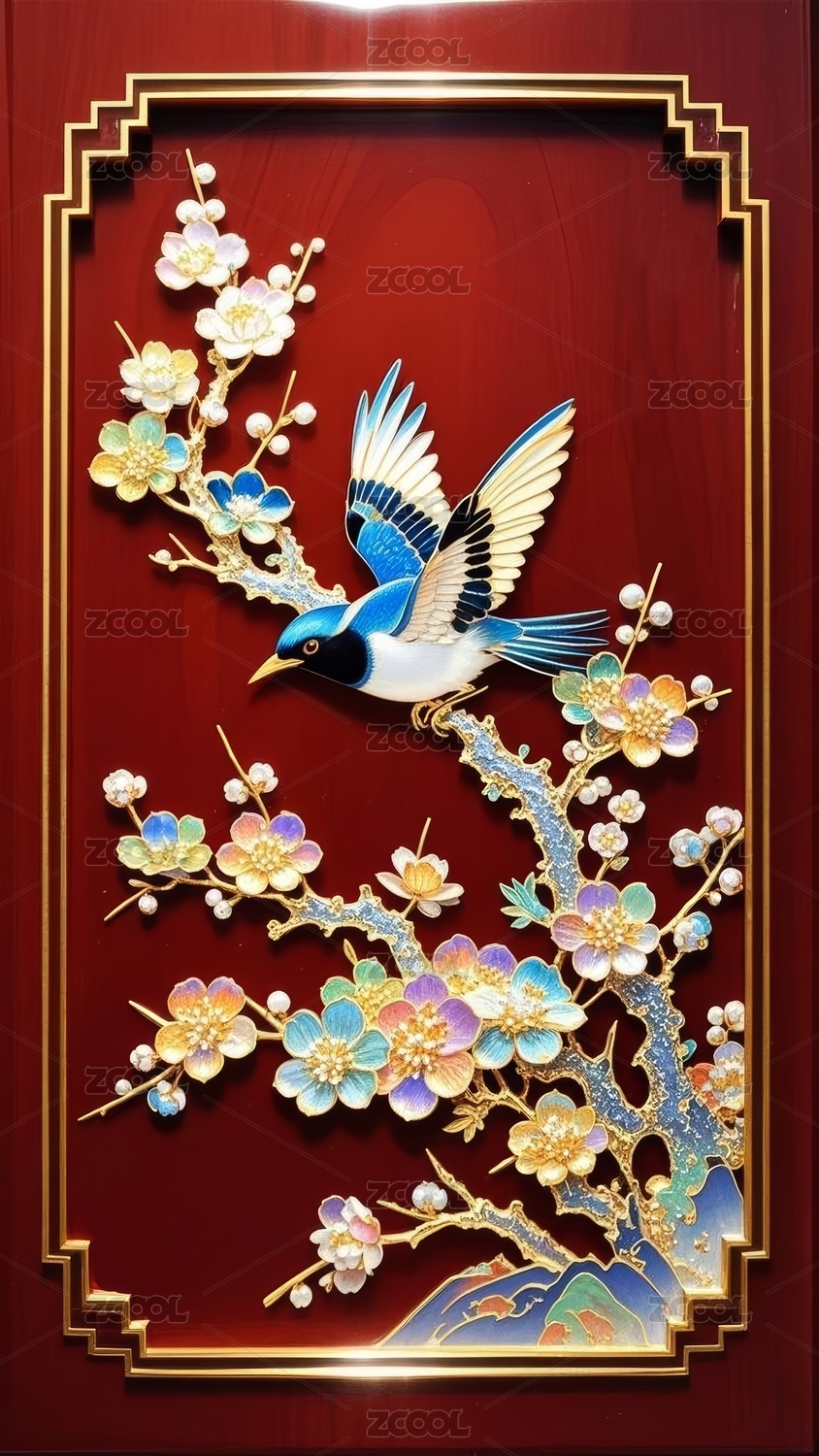 主视觉,场景,艺术,花鸟,装饰,画,中式,工艺,壁画,图案
